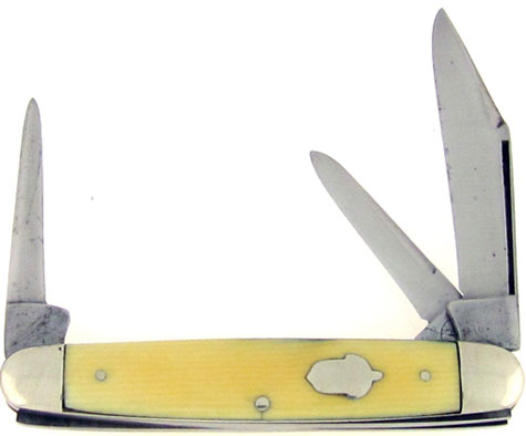Real nice waterfall celluloid handle scales. High carbon steel swedged clip point blade with long nail pull, swedged pen blade, and leather punch. Tang is stamped REMINGTON UMC MADE IN U.S.A. R3415. All blades have real good snap. Nickel silver bolsters, liners, handle pins, and inlaid crest shield. Real nice antique Remington pocket knife in excellent condition.
