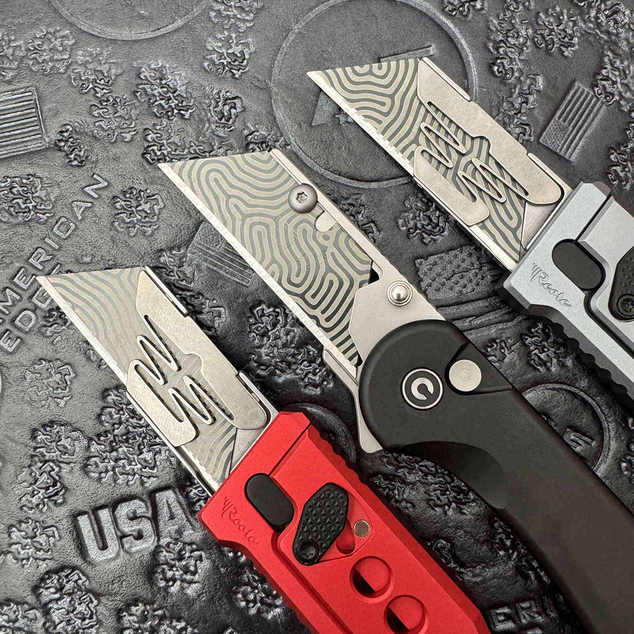 These are replacement utility razor blades for models like the Reate Exo-U and Civivi Elementum Utility and many more. These start out as a black utility blade and are lasered in a G-Vascus pattern. Spice up your utility knife, and show it off! Listing is for utility blade(s) only. Knives are not included just shown in pictures to help show what your model can look like! Pattern will varry from blade to blade. Buy more and save!