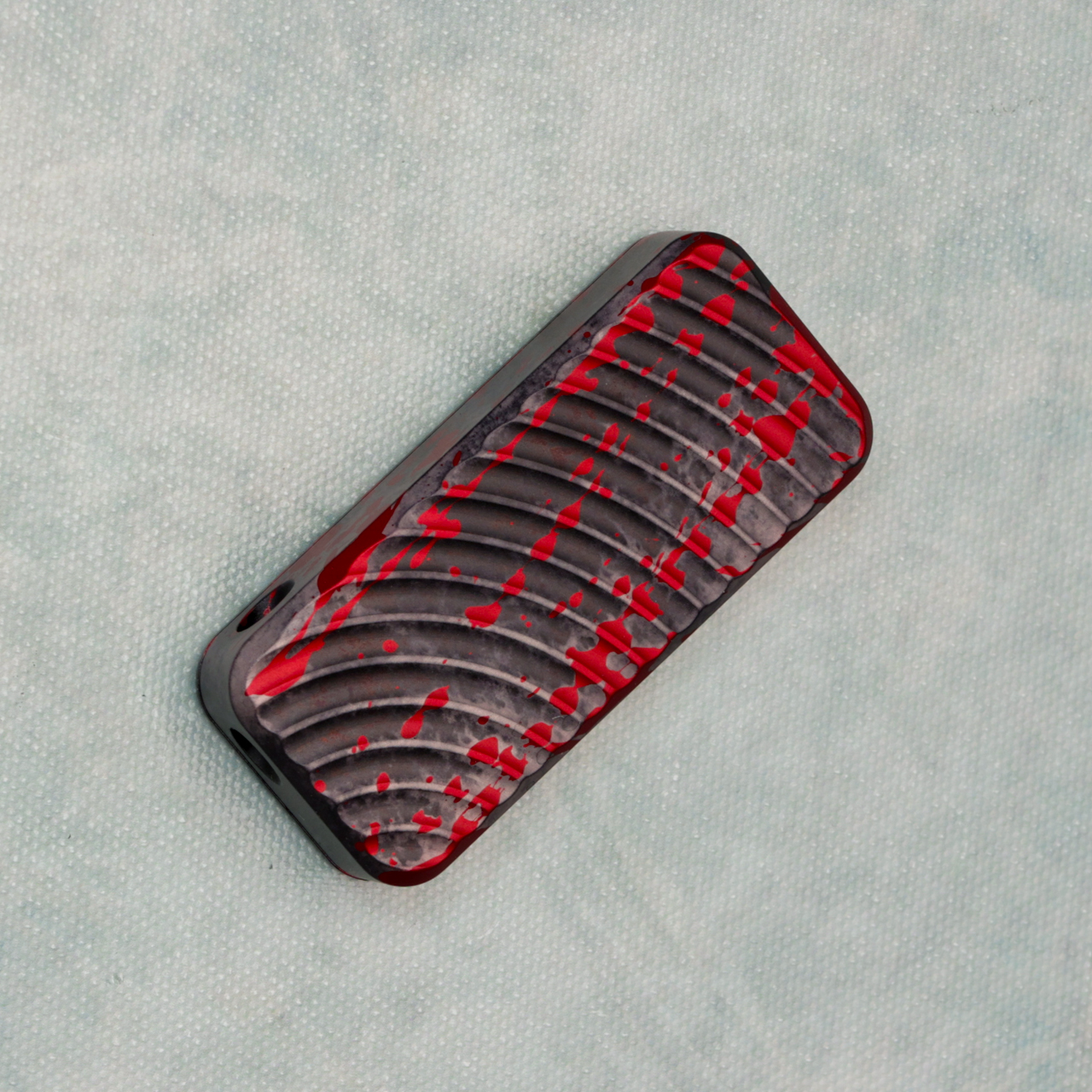 This limited edition 6061 Aluminum version of the Zero knife features a blood splatter surface in collaboration with CadLabCNC. The aluminum knife is light and quick offering a unique action feel. Brand new in box.