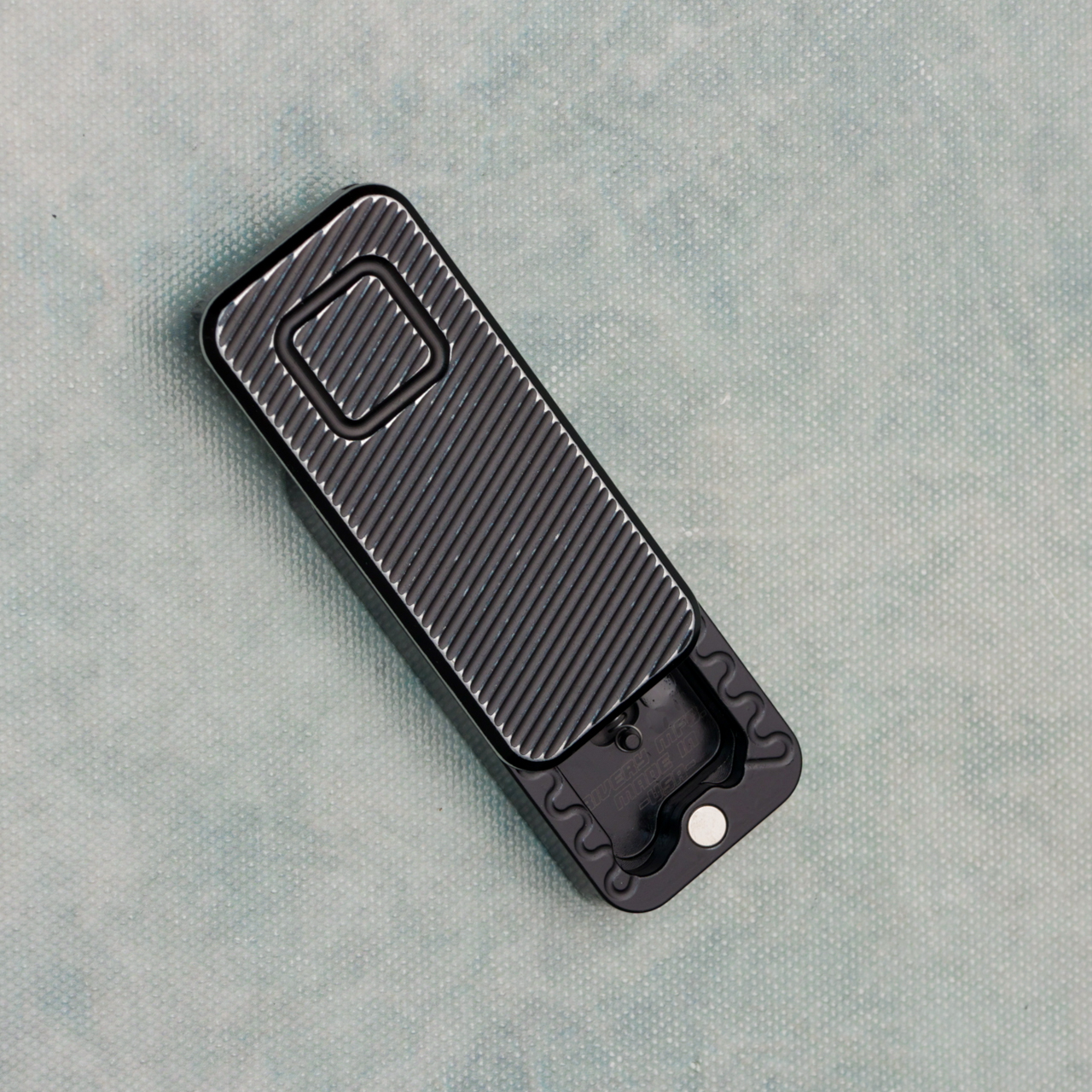 Rivery Manufacturing Zero Magnetic Utility OTF Knife File Pattern Worn Black Aluminum Handles