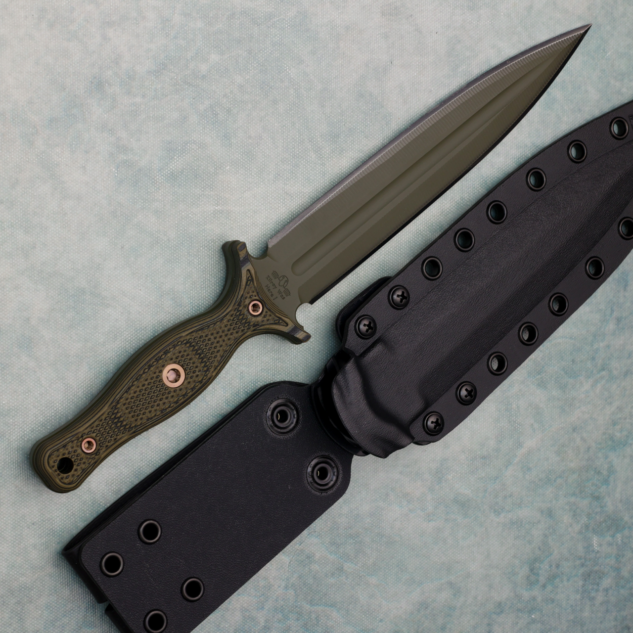 RMJ USA Kilroy Fixed Blade Dagger Dirty Olive G10 Handle OD Green Blade