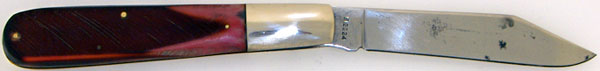 Large clip point blade is high polished and has nice deep nail-pull. Long nickel silver front bolsters. Raspberry delrin handles. Tang stamp ROBESON SHUREDGE U.S.A. on one side and number 512224 on the back side. Brass liners and handle pins. Nice strong snap. Excellent condition for age.