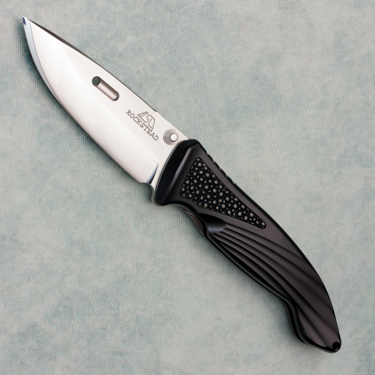 Rockstead Shin Liner Lock Black Aluminum Handle w/ Stingray Inlay Mirror Polish Blade