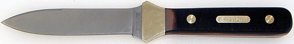 Brown sawcut delrin handles with 3 brass handle pins and inlaid shield that say's OLD TIMER on it. Full tang blade is swedged and made of shaving sharp, high carbon steel. Tang is stamped SCHRADE - 162OT. Nickel silver double guard. Comes with brown leather belt sheath.