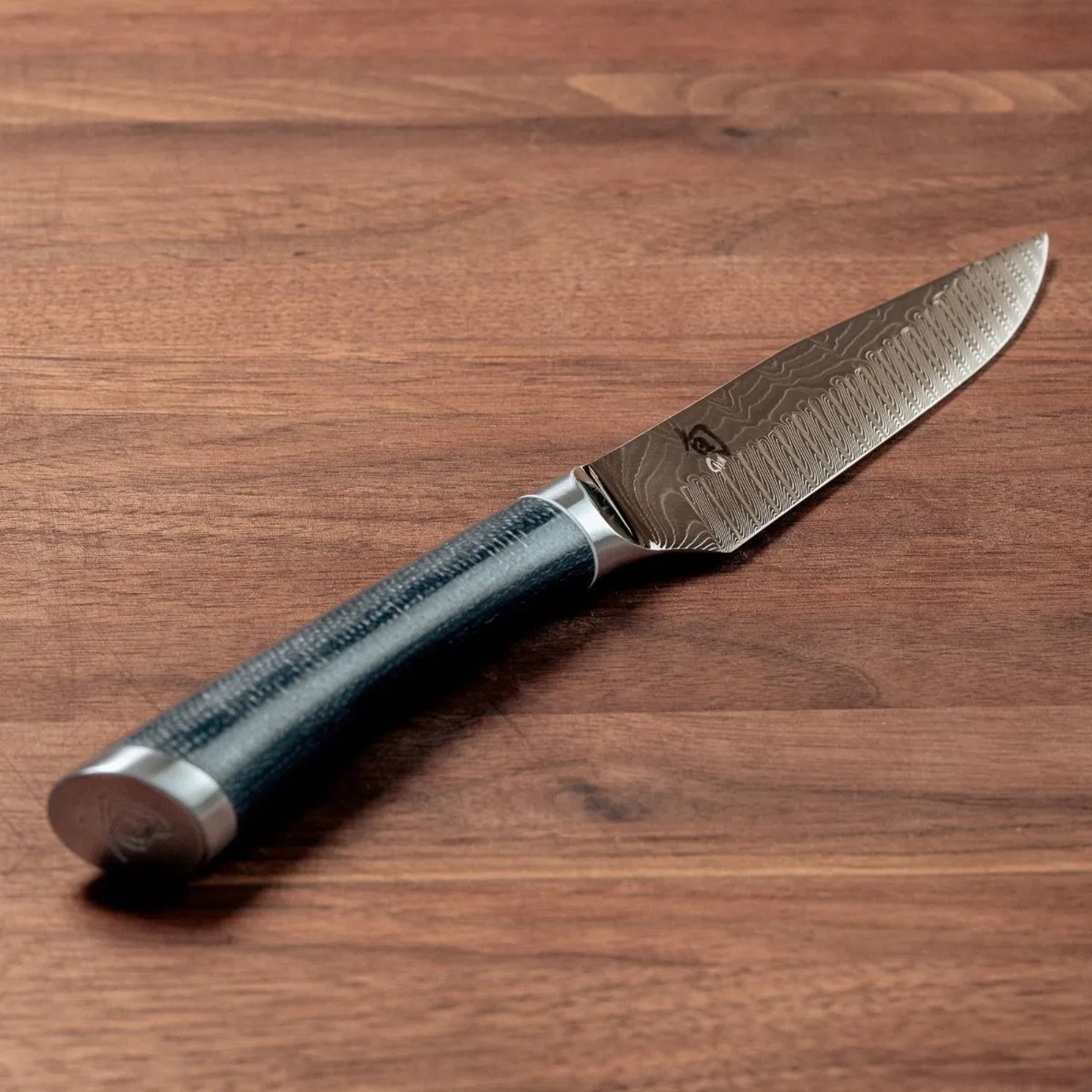 Shun Shiranami 4" Paring Knife Blue Jute Micarta Handle Dual Core Damascus Blade FRD0700