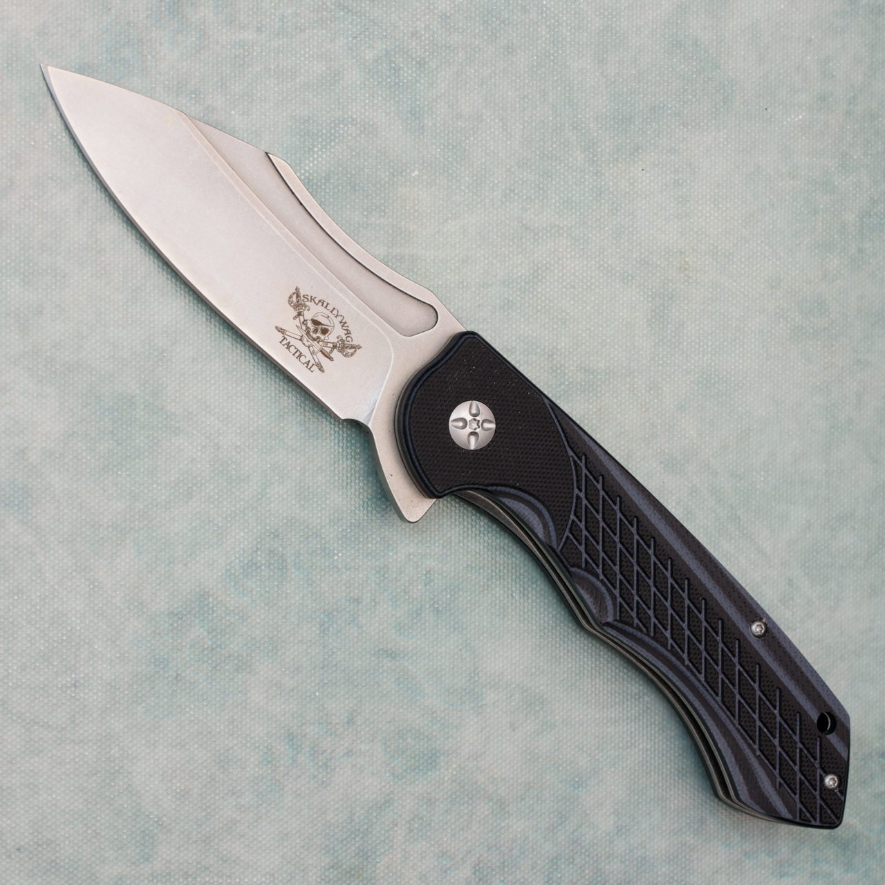 Skallywag Tactical Jolly Roger Liner Lock Black G10 Handles Stonewash Blade