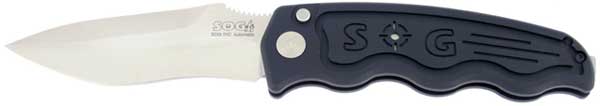 The newest addition to the SOG-TAC line of automatic knives, the SOGST-05 has a stainless steel drop point blade. This extremely fast opening auto knife is also incredibly slim. The lock up is nice and tight. On the back of the handle, a safety slid locks the blade open/closed. Reversible pocket clip. SOG's line of tactical switchblades continues to impress with the 05 model. Brand new in box.