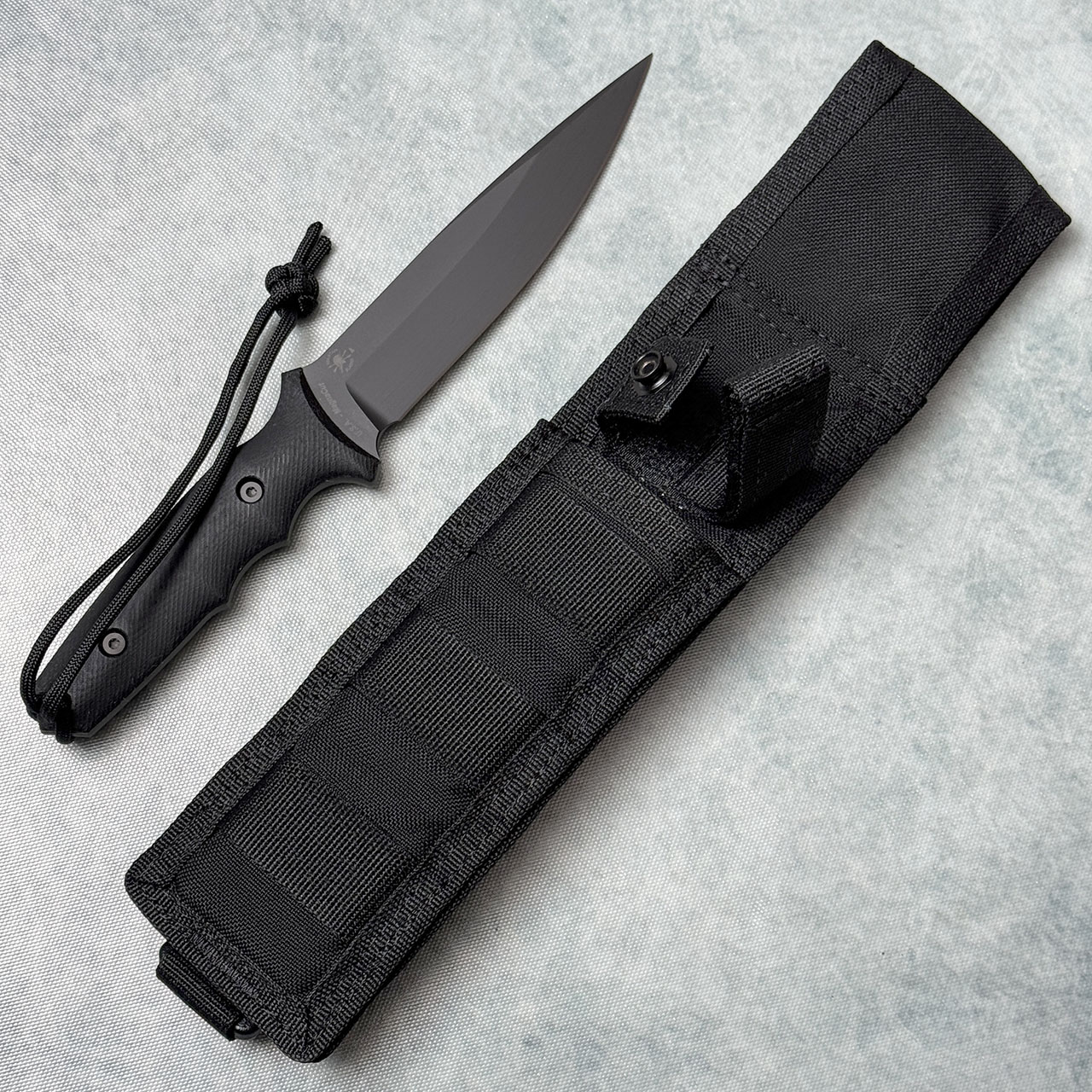 Spartan Blades Harsey Clandestina Fixed Blade Black Canvas Micarta Handles Black Blade Molle Sheath SB57BKBKNLBK