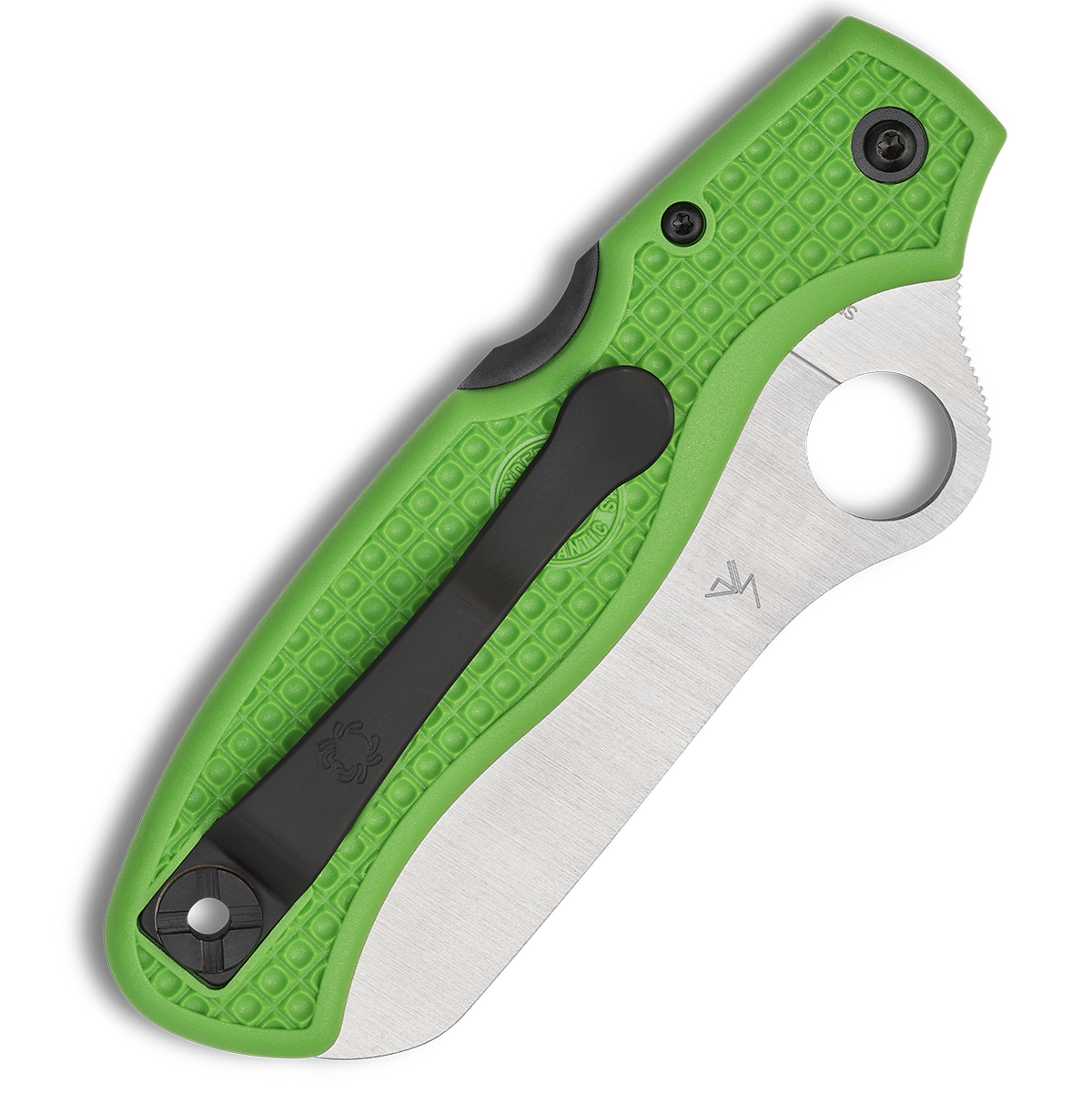 The Atlantic Salt is a time-tested favorite among savvy mariners who appreciate its versatile combination of a blunt-tipped sheepfoot blade, a 50/50 index-finger choil, an integral shackle key, and ultra-corrosion-resistant materials. The newest version of this popular model raises the bar even higher with a blade crafted from LC200N, a nitrogen-enriched martensitic steel that is also fearlessly corrosion resistant, yet offers enhanced edge retention, this one has the aggressive full serrated SpyderEdge format. Its blade is full-flat ground for low-friction cutting performance and is supported by a sturdy back lock mechanism. The lightweight handle is injection-molded in the distinctive green color of the LC200N series and is home to a reversible pocket clip that provides ambidextrous tip-up carry. Brand new in box.