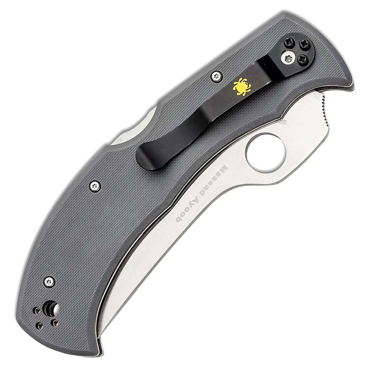 Designed by world renowned firearms expert Massad Ayoob and originally introduced in 2001, the Massad Ayoob folding knife featured a distinctive negative angle between its blade and handle. This aligns the blade with the bones of the forearm to ensure a more direct transfer of force during thrusting and cutting motions and shortens the blade's opening arc. This long awaited Sprint Run expression of Ayoob's design features a blade crafted from CPM-CruWear a specially formulated air hardening tool steel renowned for its edge holding and toughness. Its handle features full, skeletonized stainless steel liners, a sturdy back lock mechanism, distinctive gray peel ply textured G10 scales, and a black coated four position pocket clip that provides a choice of left or right side tip up or tip down carry. Brand new in box.