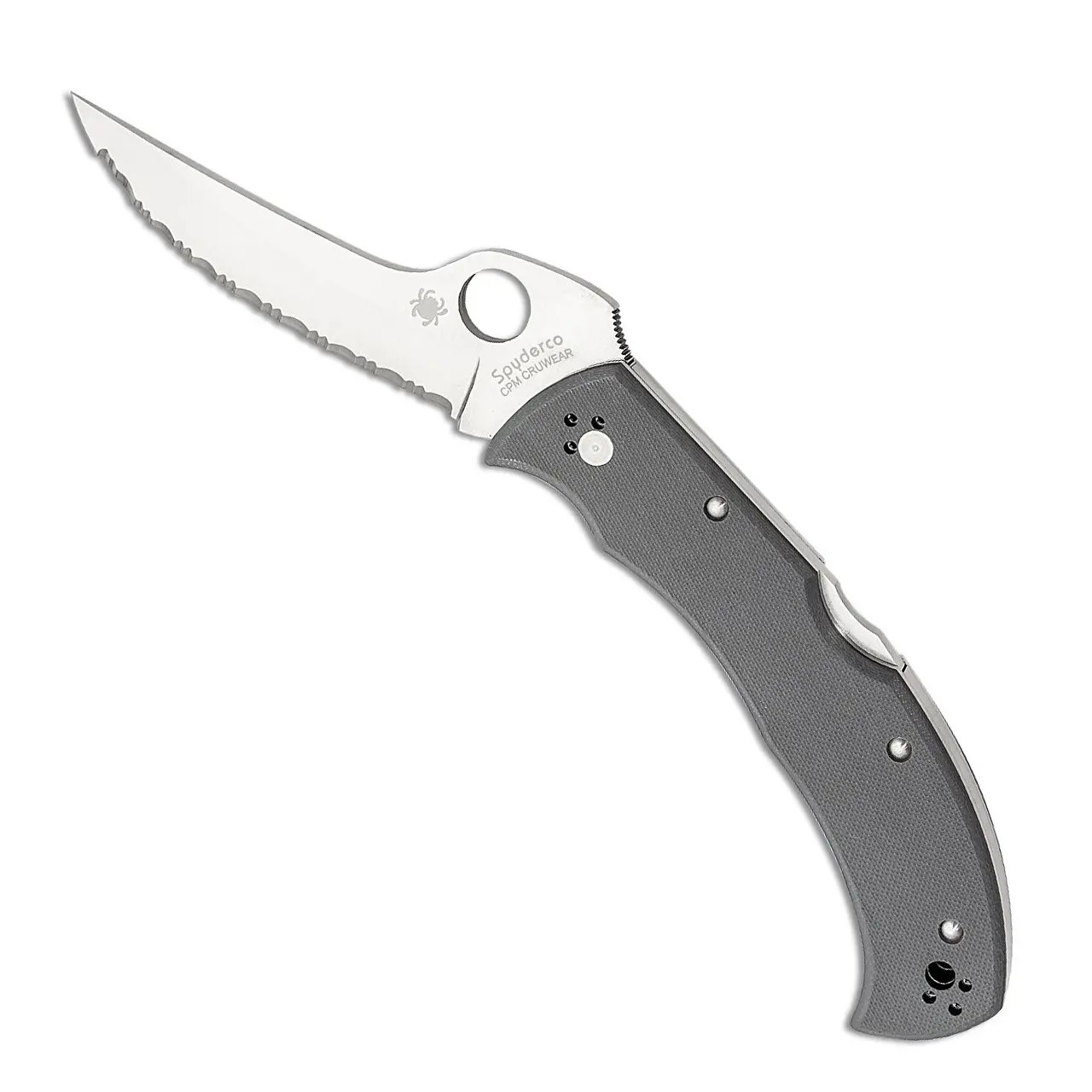 Spyderco Ayoob Lock Back Gray G10 Handle Serrated Satin Blade Sprint Run C60GSGY