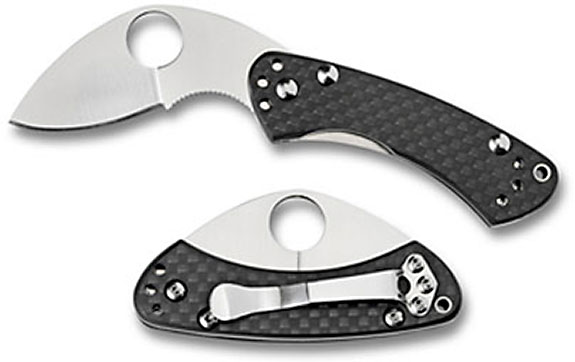 The Balance is a state of equilibrium or equal distribution. In our case it’s an Ed Schempp folder that is symmetrically identical on both ends when the folder is closed. Odd looks aside, when held in the hand it’s ergonomically proportional and a natural fit. The VG-10 blade is full-flat ground and arcs upward a radical curve with a deep finger choil. When the index finger is positioned in the choil, the cutting edge aligns with the forearm moving the blade’s weight back and the center of gravity toward the cutting edge where it responds like a natural extension of the hand. The enlarged Spyderco Round Hole is dead center on the blade when closed and perfectly off-centered when open, positioning the thumb for flowing one-hand operation, justifying the name Balance. Handle scales are gray carbon fiber and assembled with screws for cleaning and adjustment. Four-way adjustable hourglass clip, clips discreetly in a pocket. Piped lanyard. Symphonic fit and finish. Brand new in box.