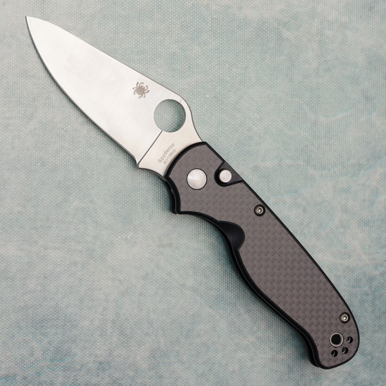 Spyderco ButtonUp Button Lock Folder Peel Ply Carbon Fiber Handle Satin Blade C275CFP