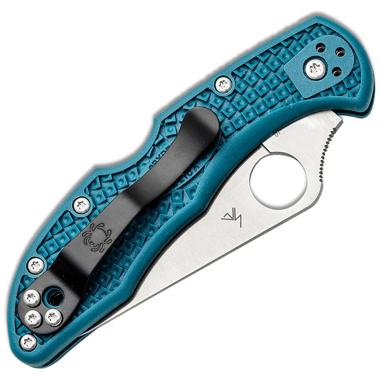 This stunning variation of the Delica 4 Lightweight combines a satin serrated K390 blade with a blue fiberglass reinforced nylon (FRN) handle. It has a black four position pocket clip and satin hardware. Brand New In Box.