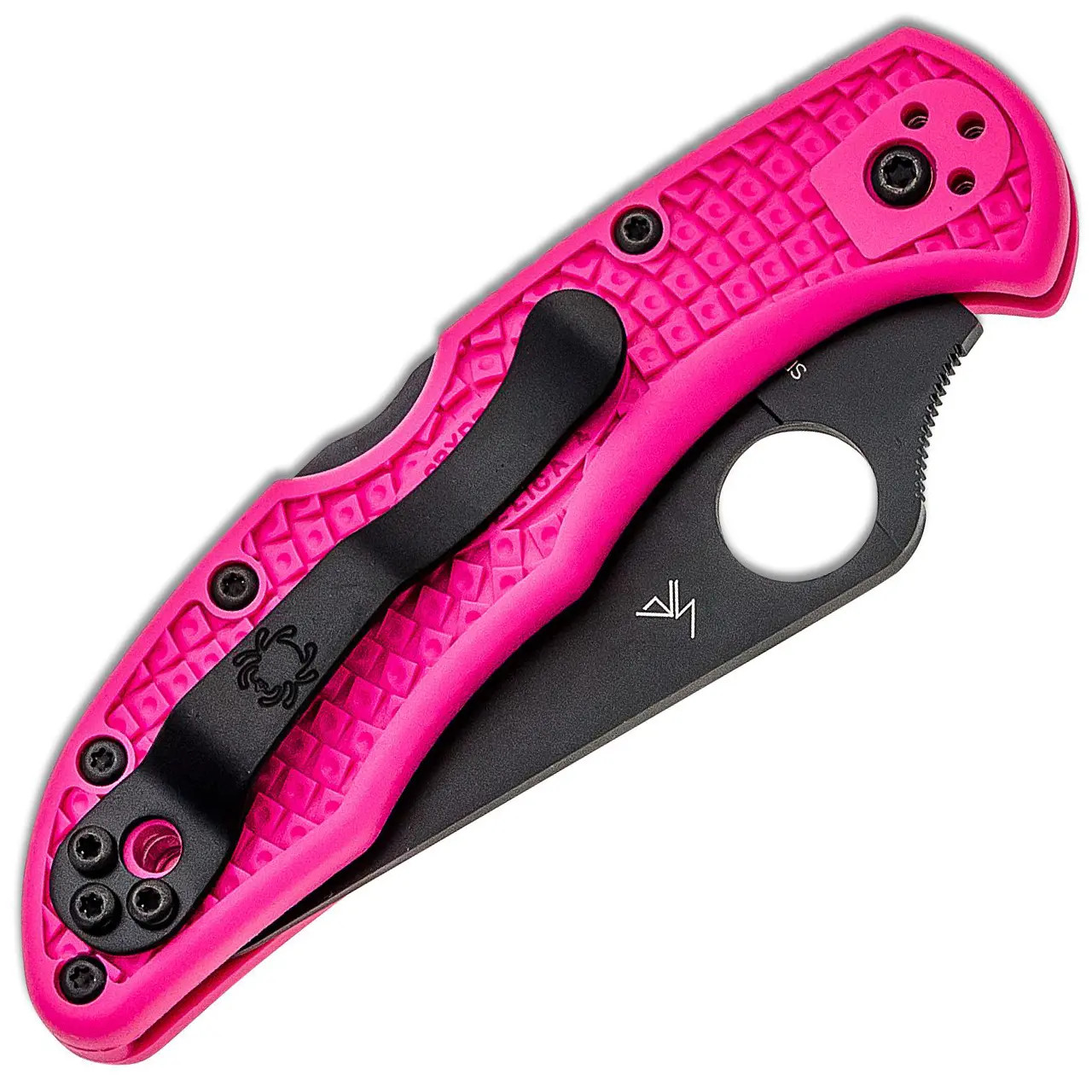 Since its introduction 30 years ago, the Delica has been the platform for dozens of different combinations of blade steels, handle colors, and handle materials. This remarkable rendition of the Delica 4 Lightweight combines a full flat ground blade crafted from American made CPM-S30V stainless steel with a brilliant pink handle. The injection molded handle includes Spyderco’s signature Bi-Directional Texture pattern for a non slip grip and a black four position pocket clip configurable for all carry positions.