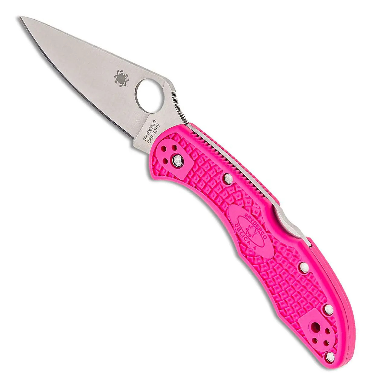 Spyderco Delica 4 Lightweight Lock Back Pink FRN Handle Satin S30V Blade C11FPPNS30V
