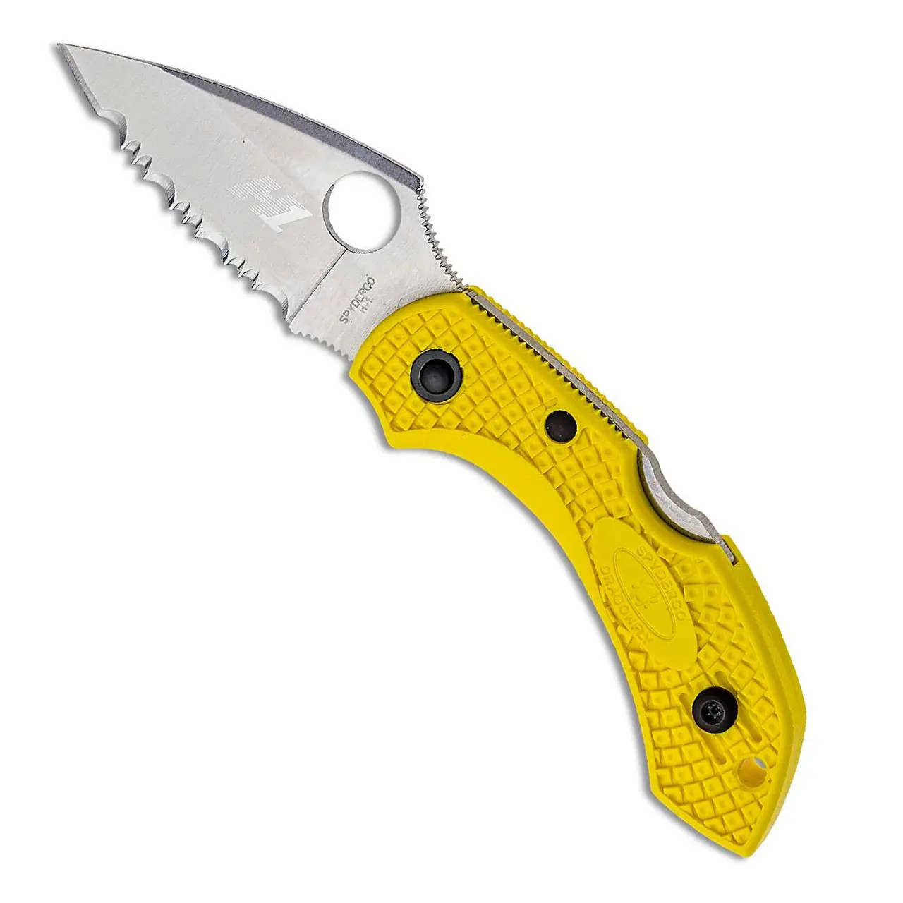 Spyderco Dragonfly 2 Salt Lock Back Yellow FRN Handle Satin H2 Serrated Blade C28SYL2