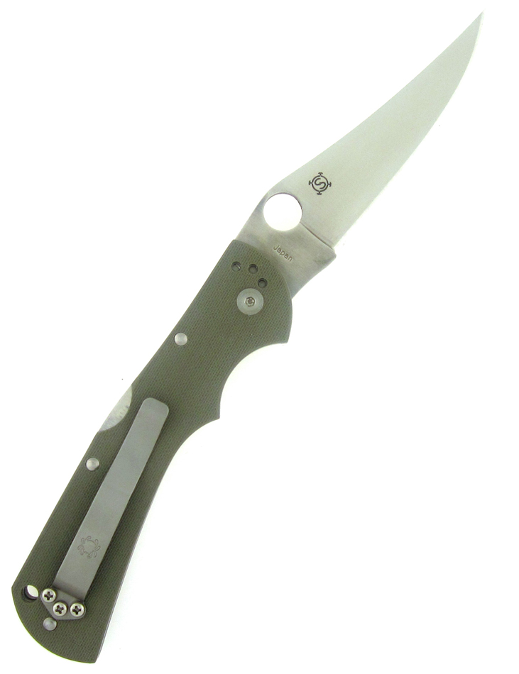 J.D. Smith, a long standing knife makers guild member designed a tactical folder for himself which used advanced materials and looked incredible. This evolved naturally into the Spyderco C58 J.D. Smith ClipIt. This is a limited sprint run of the knife with a deep Foliage Green G-10 handle. If you are a fan of J.D. Smith then this would make a great commemorative knife to own, and to use. Spyderco has positioned the thumb hole deep into the blade on this knife, so that the overall appearance is more streamlined. It features a 4 way ambidextrous pocket clip so it can be carried left or right handed, tip up or tip down. The blade is VG-10 stainless steel, with a satin finish and plain edge. The handle is almost 5 inches long and benefits from a good deep finger choil to aid grip and prevent slippage onto the blade. At 7 inches in overall length it is a mean party animal, and with it's lock back mechanism you won't mind using it ferociously as it follows your every lead, doing what you ask. New in box.
