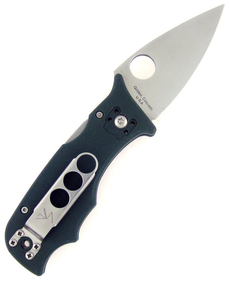 Features include: A socially friendly three inches of CPM S30V blade that is flat-ground. By keeping the blade small to medium in size, the model draws less interest when taken out and used in public. It's also thicker than most production blades at 4mm, with the diameter of the Spyderco Round Hole enlarged to 14mm for big or gloved hands. Recessed contouring milled out of the green G-10 handle and a prominent quillion provide substantial grip surface with enough angles to really wrap the hand around, hold on tightly and muscle down while cutting. Because the folder is for heavy use and MBC applications it has a Compression Lock -- the strongest, highest weight bearing locking system Spyderco manufactures. To lessen wear and tear on a pocket, the clip is rolled along the edges and positions tip-up or down. Three indexing divots (these are mirrored on the opposite side of the handle as well) are for rotating hand-holds during MBC practice and drills. A real scrapper designed to be overworked and still fall within legal blade length limits in most municipalities. Excellent condition, no box. Very hard to find!