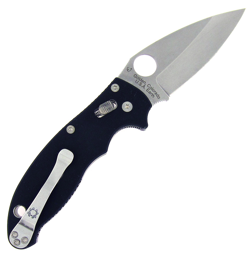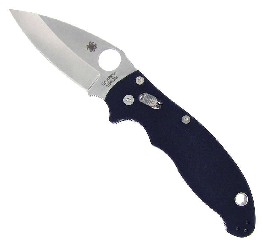 Black G-10 handles with finger grooves. Satin finished 154-CM stainless steel blade with thumb hole pull and thumb jimping on the spine and bottom of the blade and handle. High polished stainless steel pocket clip can be mounted on either side and has the Spyderco logo. Stainless steel lined lanyard hole is oversized making it real easy to attach a lanyard . Great Spyderco ball bearing lock pocket knife that is completely ambidextrous. Comes brand new in box.