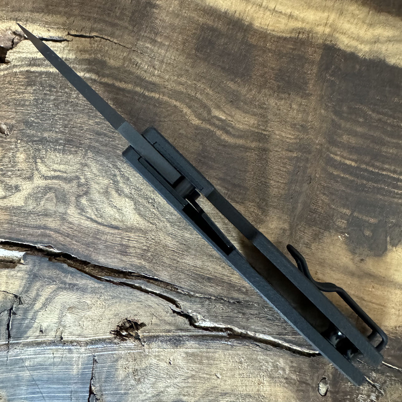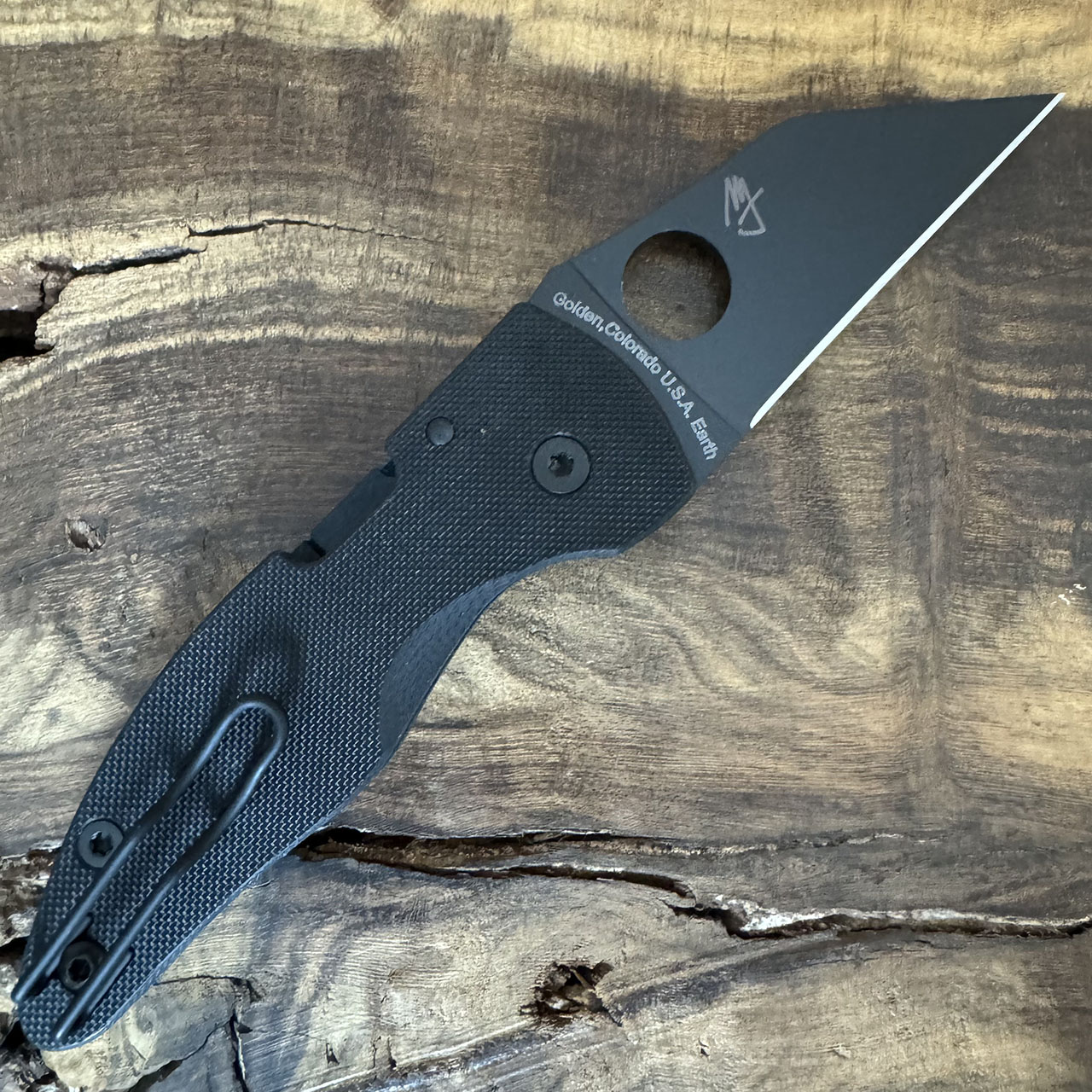 This model features black G-10 handle scales. Black finished CPM-S30V stainless steel wharncliffe blade. Black finished hardware and a wire pocket clip. Brand new in box.