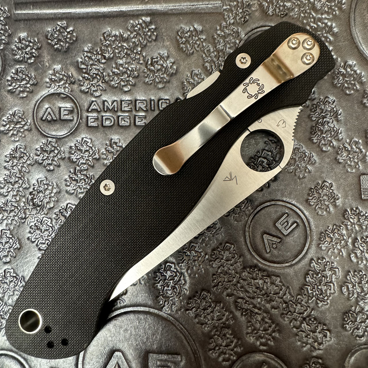 Designed by Spyderco co-founder Sal Glesser as the perfect knife for forward deployed military personnel, the original Military Model is one of the cutlery industry’s most iconic designs. More than 25 years after its original release, the eagerly anticipated Military 2 builds on that hard earned reputation while incorporating several significant design improvements. Instead of a LinerLock, the Military 2’s full-flatground CPM-S30V blade is supported by Spyderco’s signature Compression Lock mechanism, which offers greater strength and even safer one handed operation. The stainless steel liners that form the foundation of the lock are larger, giving the knife increased structural strength and anchoring its four position pocket clip, which is configurable for left or right side, tip up or tip down carry. The skeletonized liners are nested within peel ply textured G10 scales to maintain a slim profile and complement its open backed construction to reduce the knife’s overall weight. A proud successor to a legendary design, the Military 2 is ready to serve. Brand new in box.