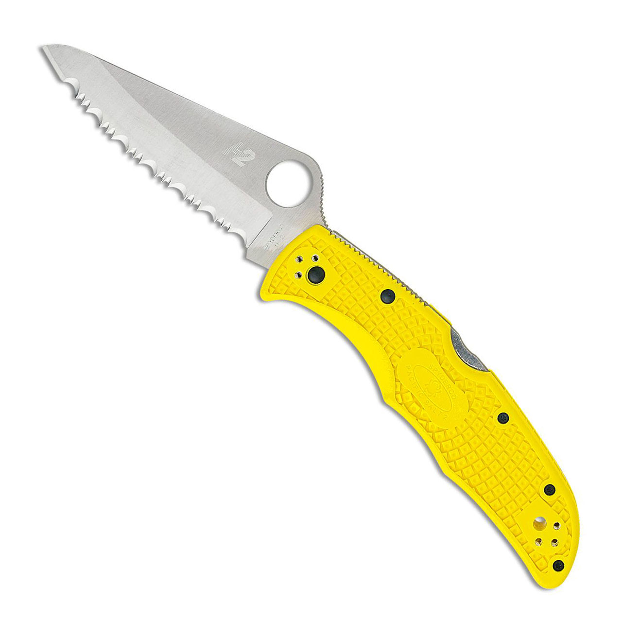 Spyderco Pacific Salt 2 Lock Back Yellow FRN Handle Satin Full Serrated Blade C91SYL2