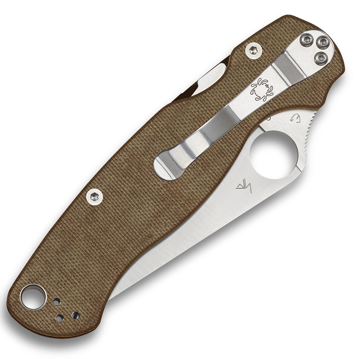 Spyderco Para Military 2 Brown Canvas Micarta Handle Satin CruWear Blade C81MPCW2