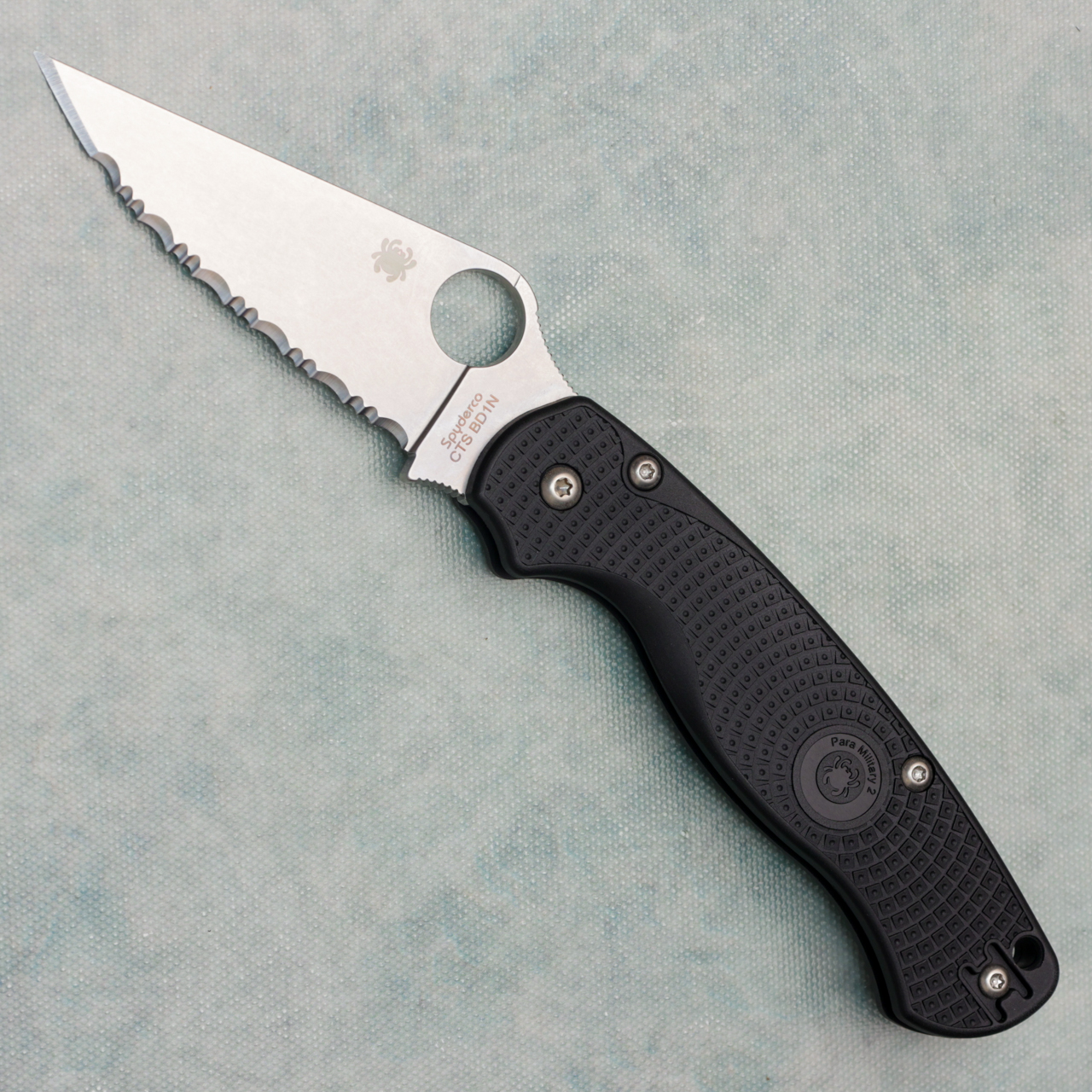 Spyderco Para Military 2 Lightweight Compression Lock Black FRN Handle Satin Serrated Blade C81SBK2