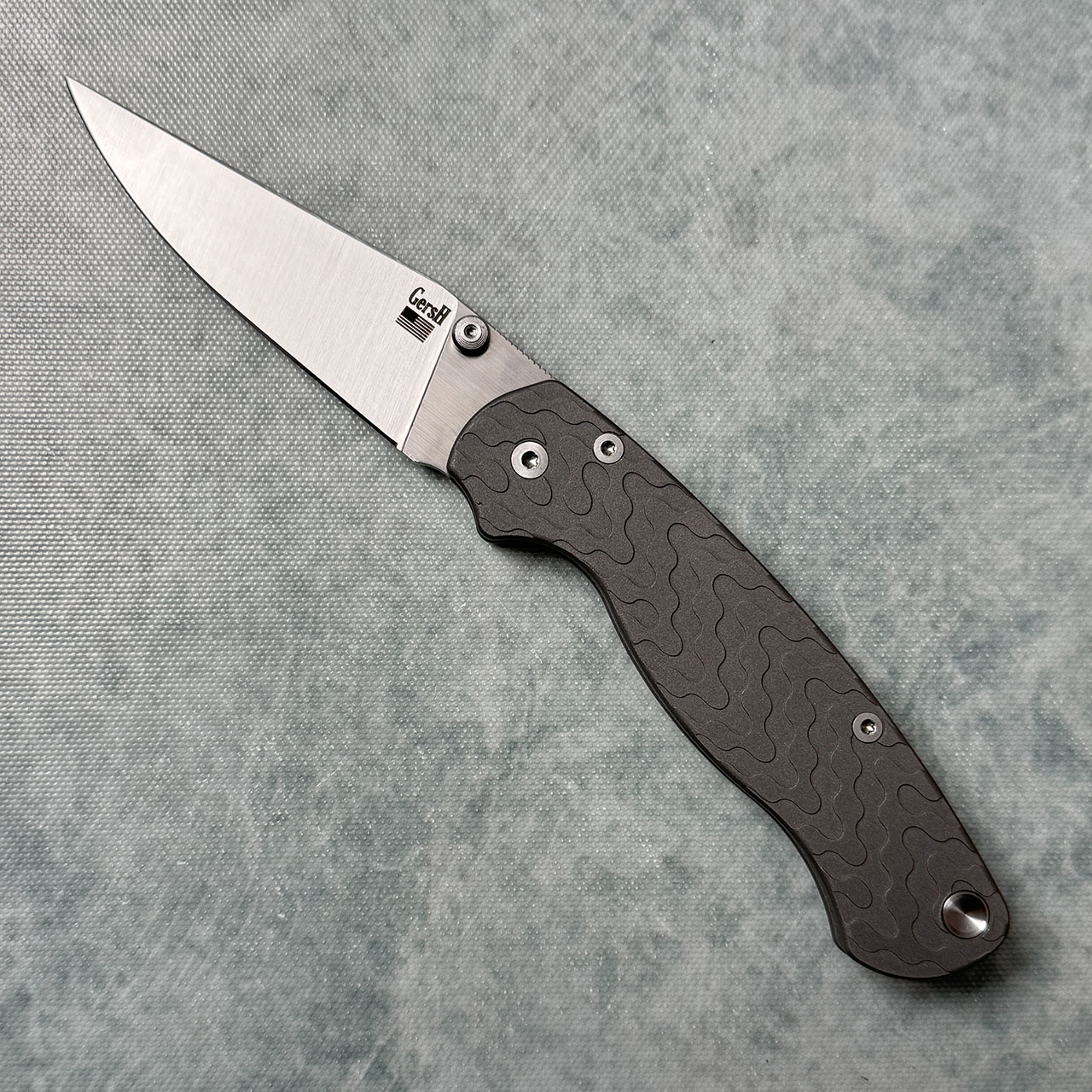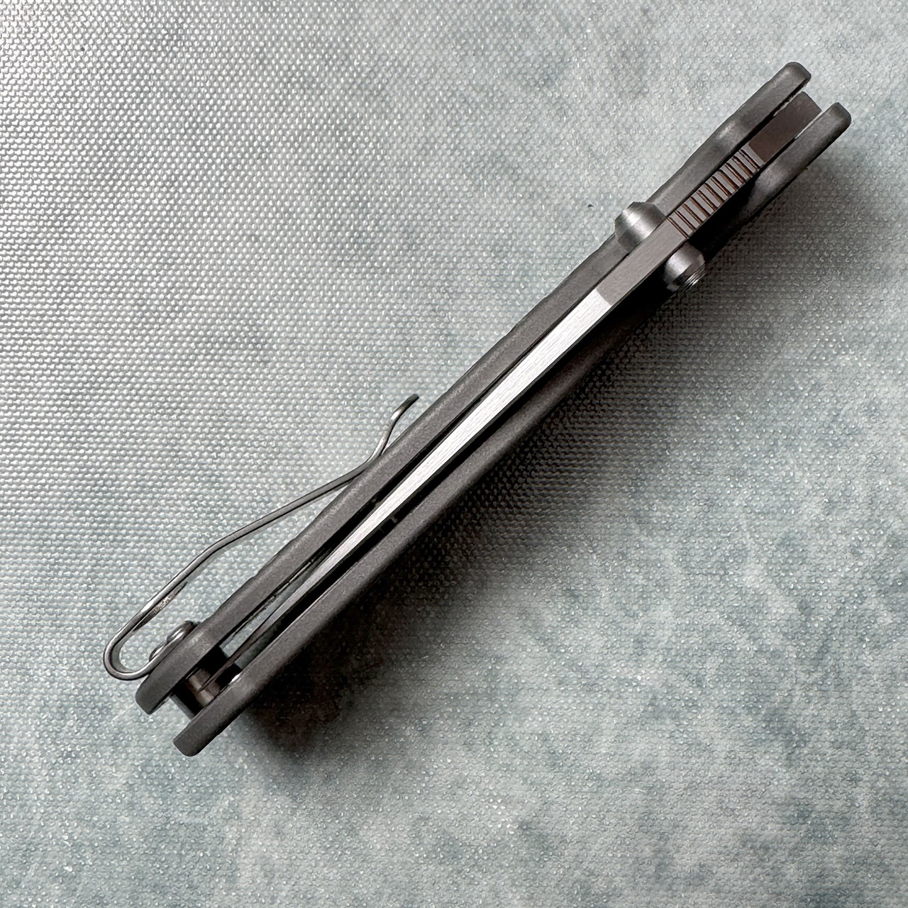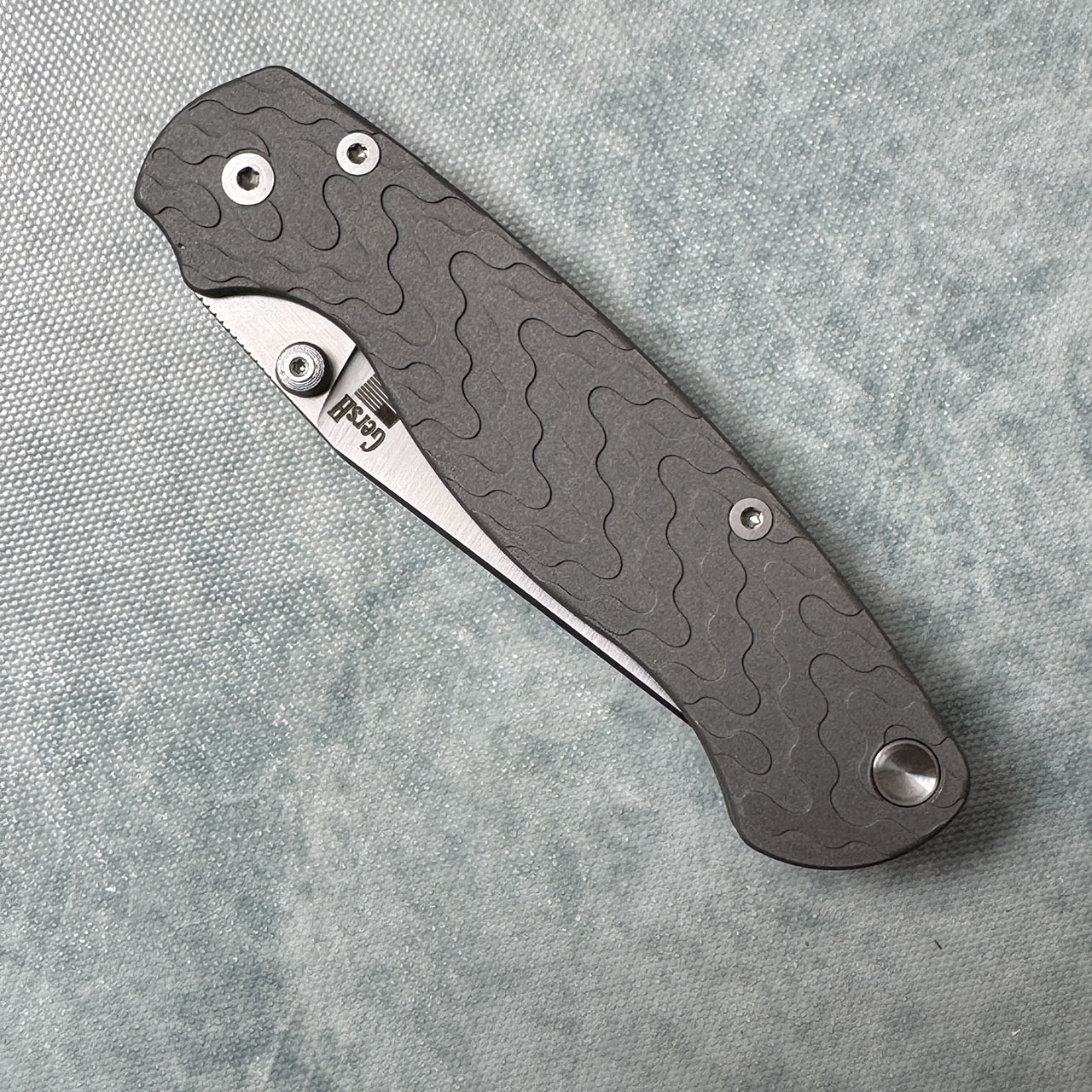 This model features rockscale designs titanium handle scales. Satin finished CPM-MagnaCut reblade by Gersh Blades. Deep carry pocket clip. Lanyard delete tube. Clip has some wear otherwise in good shape! Comes with a spyderco box.