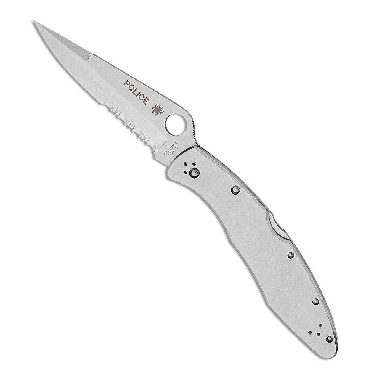 Spyderco Police Lockback Folder Stainless Steel Handles Satin Partially Serrated Blade C07PS