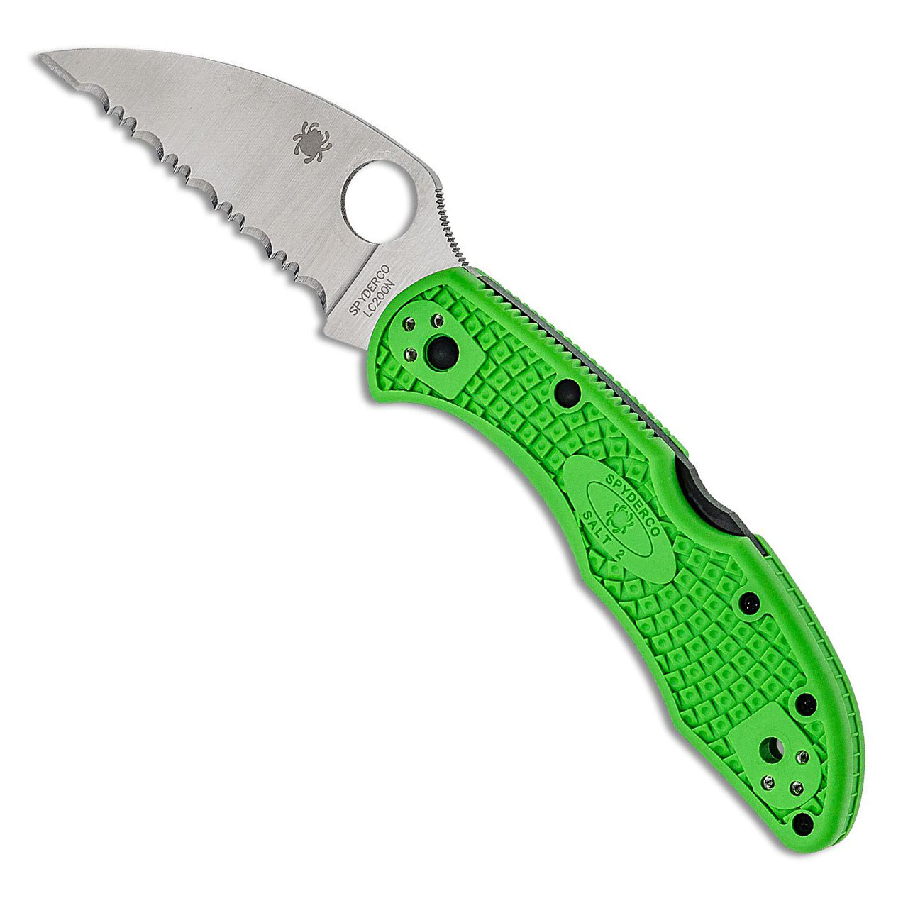Spyderco Salt 2 Lock Back Green FRN Handle Satin Serrated LC200N Wharncliffe Blade C88FSWCGR2