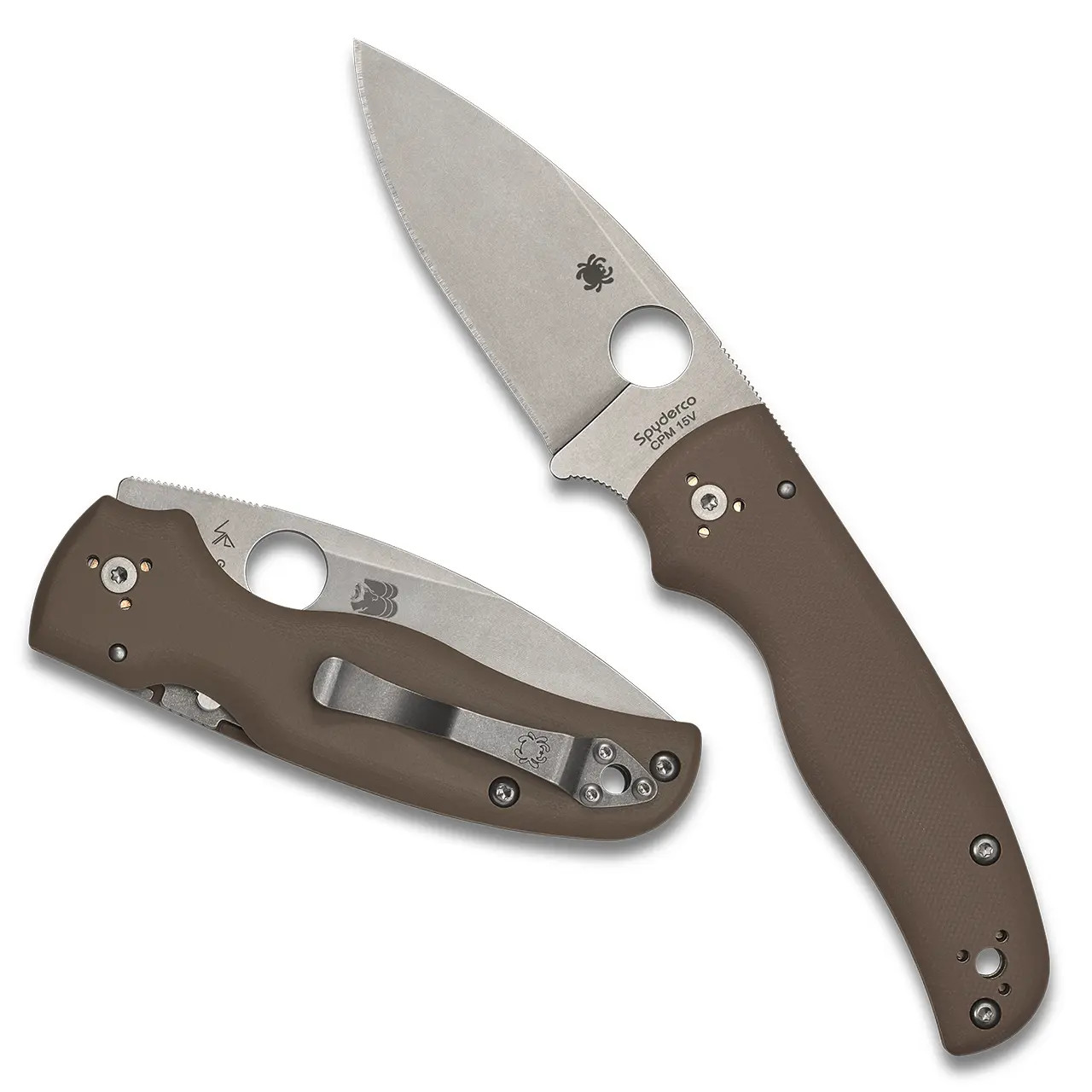 Spyderco Shaman Compression Lock Brown G-10 Handle Stonewash CPM-15V Blade Sprint Run C229GBN15V