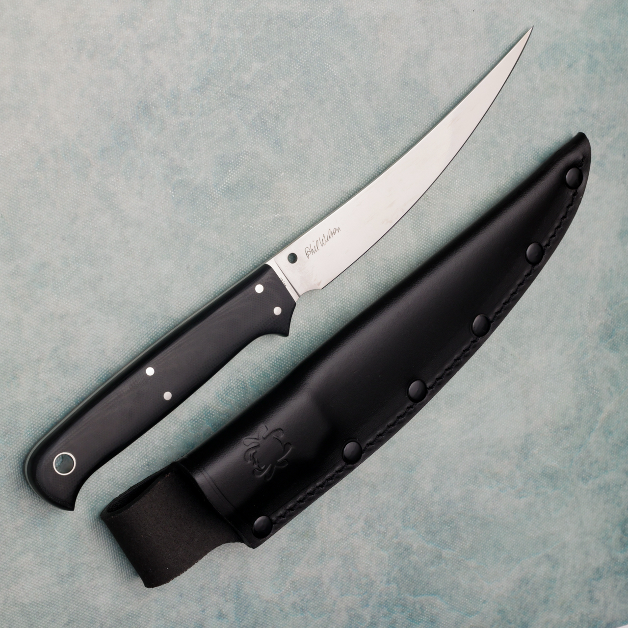 Phil Wilson is truly unique among custom knifemakers. In addition to his consummate skills as a craftsman, he is also a passionate outdoorsman with a deep understanding of the design dynamics of high-performance hunting and fishing knives. One of his most popular custom designs is the Shelter Cove™—the filet knife of choice of many savvy fishermen worldwide. Now Spyderco is proud to offer an affordable production version of this highly refined design. Its blade is crafted from 8Cr17MoV stainless steel and painstakingly full-flat ground to offer exceptionally thin edge geometry and a uniform distal taper. Expertly heat treated for the optimal balance of edge retention and flexibility, it also features full-tang construction, contoured G-10 handle scales, and an oversized lanyard hole. A faithful rendition of Wilson’s coveted custom design, our Shelter Cove comes complete with a beautifully crafted genuine leather sheath with a belt loop. Brand new in box.