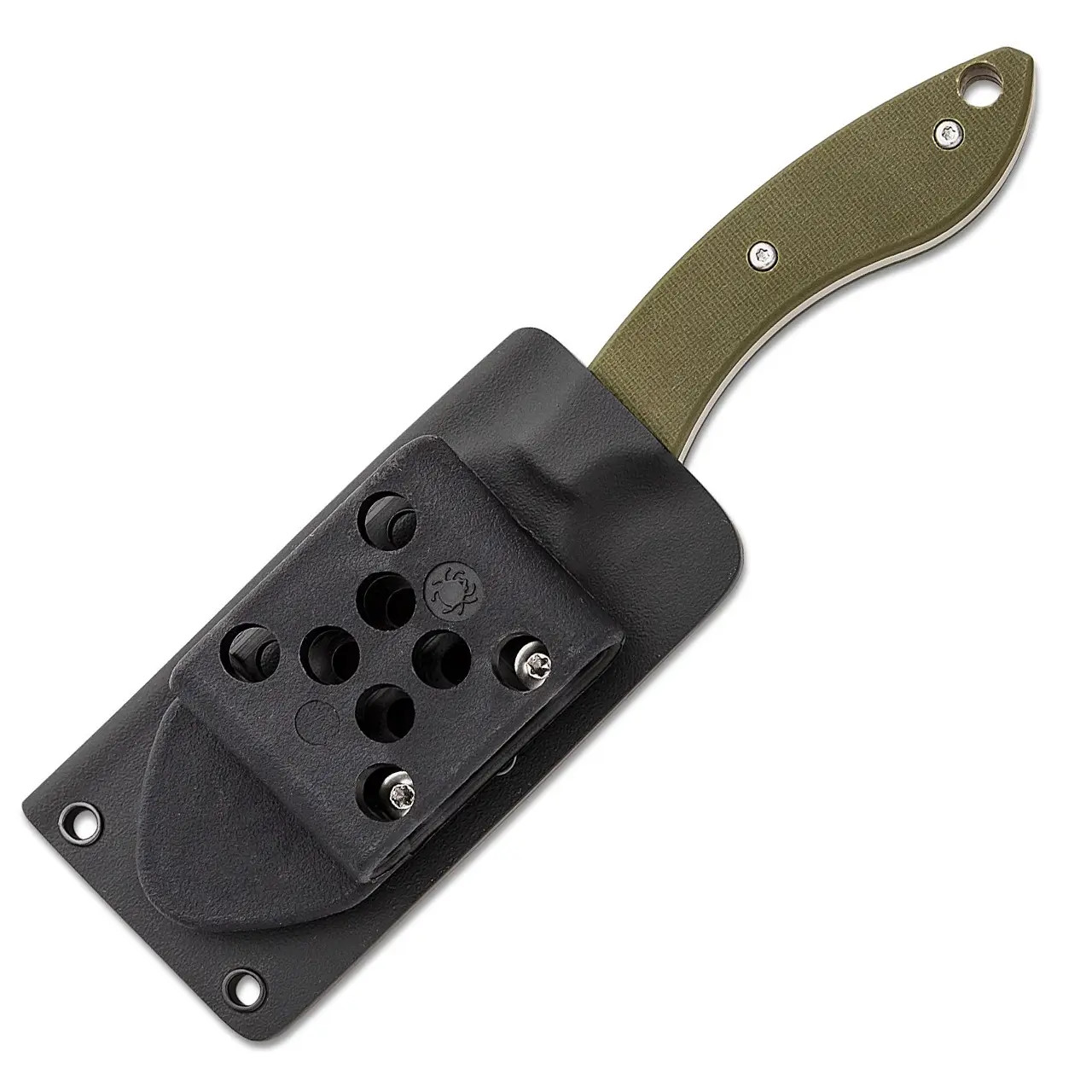 Sjoerd Stok is a Dutch marketing specialist for one of Europe’s largest retailers of knives and outdoor gear. He is also a classically trained artist with a deep passion for knives. While attending art school, he learned the value of an everyday carry utility knife, but preferred the simplicity of a small fixed blade. Putting his talents to work, he designed two compact, legally friendly “urban fixed blades” that bear his name. The Stok Bowie showcases a saberground Bowie style blade crafted from 8Cr13MoV stainless steel. Its full tang handle features a refined ergonomic profile, peel ply textured G-10 handle scales, and a generous lanyard hole. To balance discreet carry and ready access, it comes complete with a custom molded Boltaron sheath with a versatile G-Clip attachment that supports fully adjustable belt and inside the waistband carry. Brand new in box.