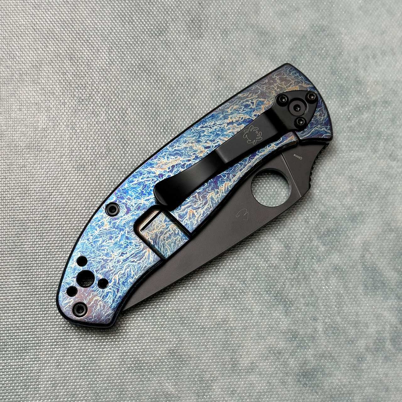Spyderco Tenacious Frame Lock Disarray Finish Titanium Handles Black Blade C122TIBLBKD2P
