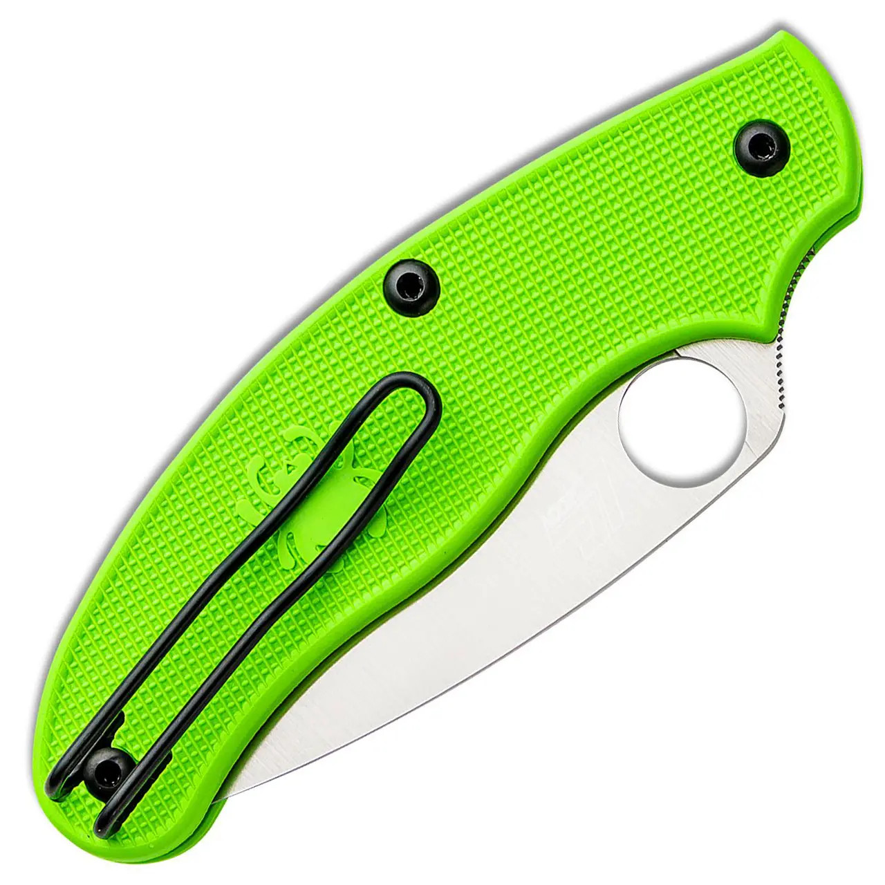 The Salt version of the UK Penknife was the first Spyderco non locking SLIPIT model to offer extreme corrosion resistance by showcasing a LC200N blade steel. Originally offered with vibrant yellow fiberglass reinforced nylon (FRN) handle scales, this groundbreaking knife now features the signature high visibility green handle color of most other Spyderco LC200N folders. The full flat ground blade of this knife is available in both PlainEdge and SpyderEdge configurations and includes a generous index finger choil for enhanced control and safety. Its fully accessible Trademark Round Hole complements a reversible deep carry wire clip to make its carry, deployment, and operation completely ambidextrous.. Brand new in box.