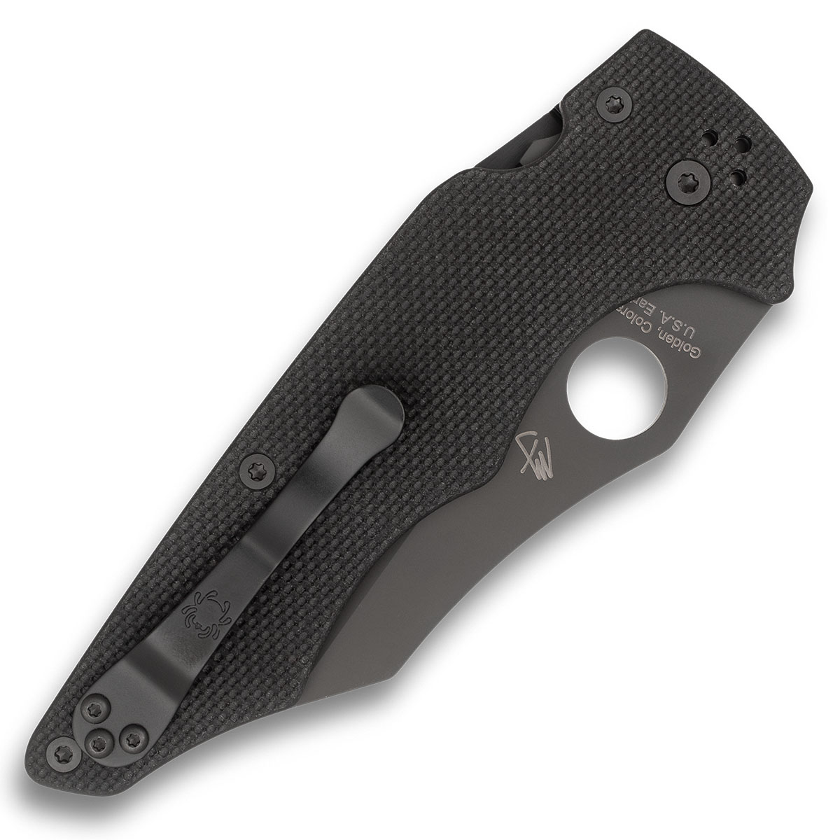 This model features black G-10 handle scales. Black DLC finished CPM-S30V stainless steel wharncliffe blade. Black finished hardware and pocket clip. Brand new in box.