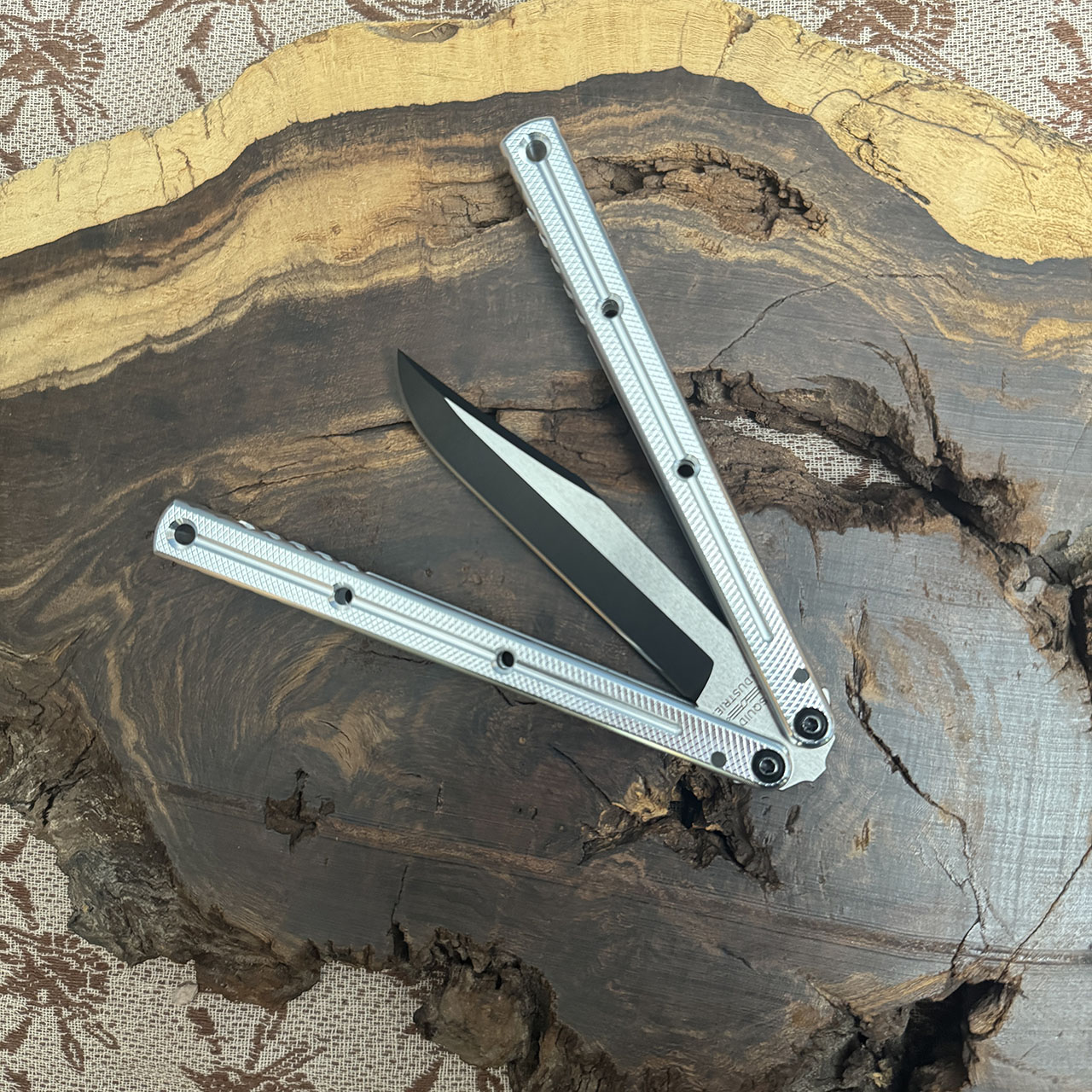 Squid Industries CCKS Krake Raken V3 Balisong Bowie Silver Handles Dual-Tone Blade