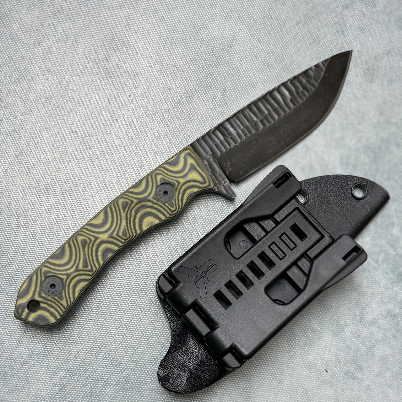 Every Stroup Knives GP2 is sourced and made in the USA and comes with a Kydex sheath. Each sheath is custom formed to its knife for maximum retention. Each sheath comes with a belt clip that can be mounted left-handed, right-handed, vertical, or horizontal.