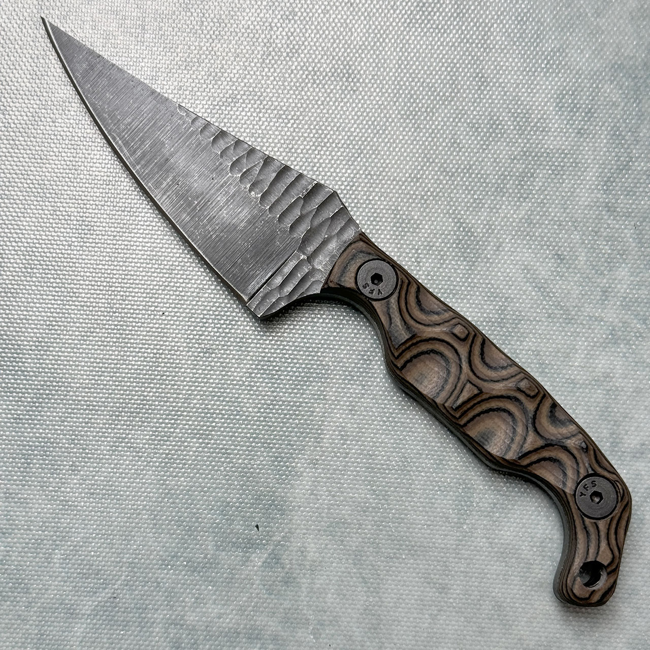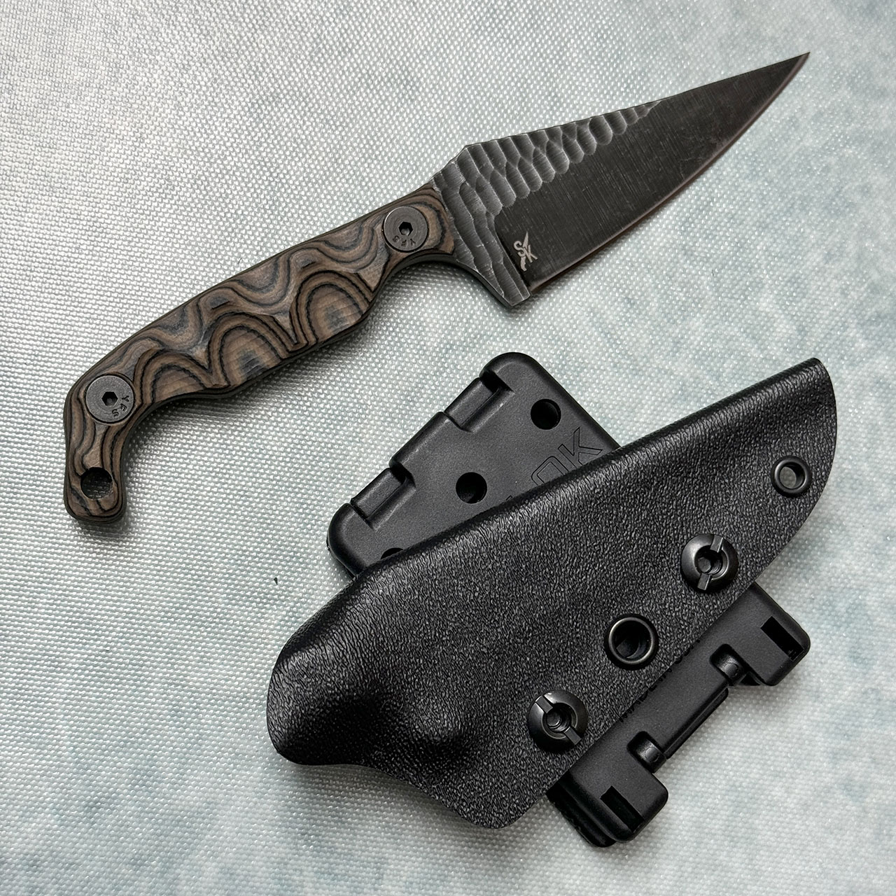 Stroup Knives Mini1 Fixed Blade FDE Camo G10 Handle Dark Acidwashed Blade