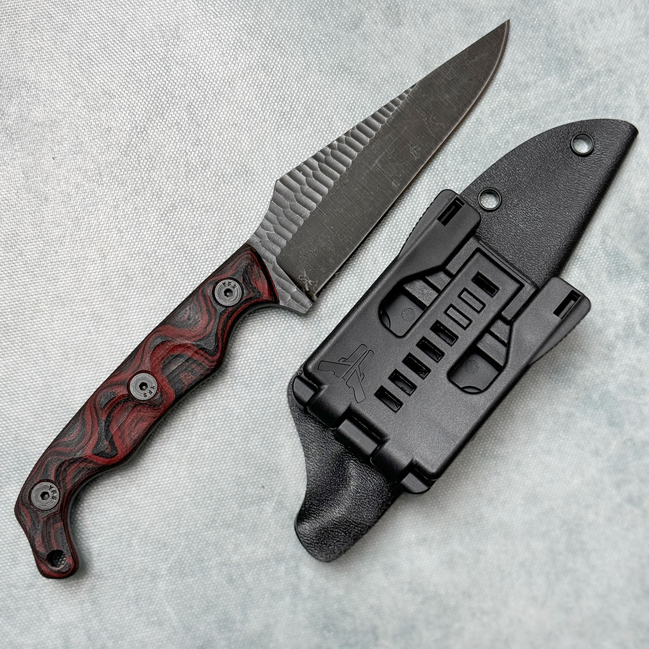 Stroup Knives TU2 Fixed Blade Red/Black Swirl G10 Handle Dark Acidwashed Blade