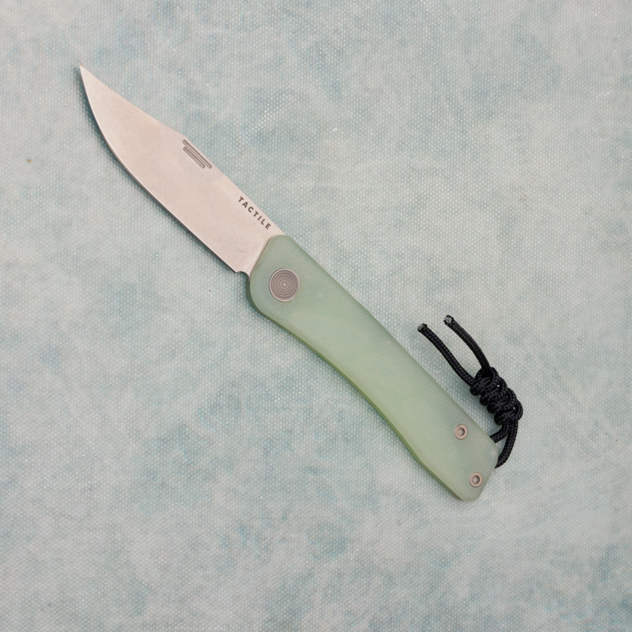 This particular model is even more lightweight and amazing!! It features a stonewash finished CPM-MagnaCut stainless steel clip point blade with standard cutting edge. Natural jade g-10 handle with black lanyard. Brand new in box.