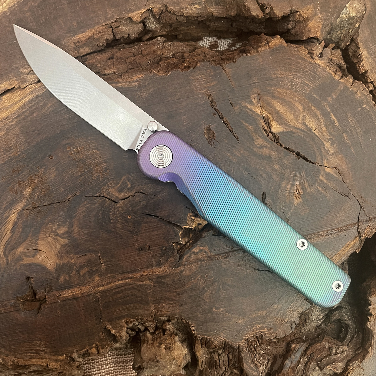Tactile Knife Co. Rockwall Thumbstud Liner Lock Titanium Handle Stonewash Magnacut Blade Pattern 3 AE Custom Shop