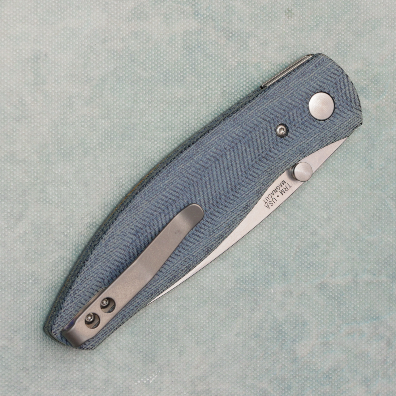 Three Rivers Manufacturing TRM Atom Liner Lock 3D Blue Denim Micarta Scales Stonewashed MagnaCut Blade