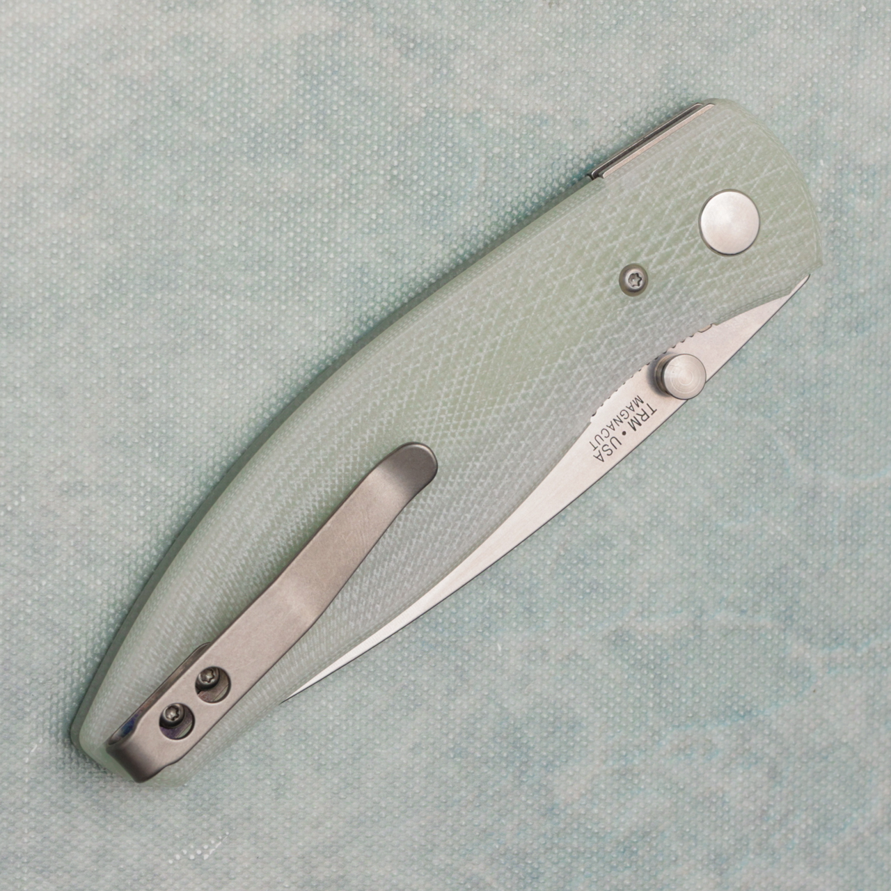 This model comes with 3D jade lizard skin textured G10 scales, and a CPM-MagnaCut stainless steel blade. Right hand tip up carry only. Brand new in box.
