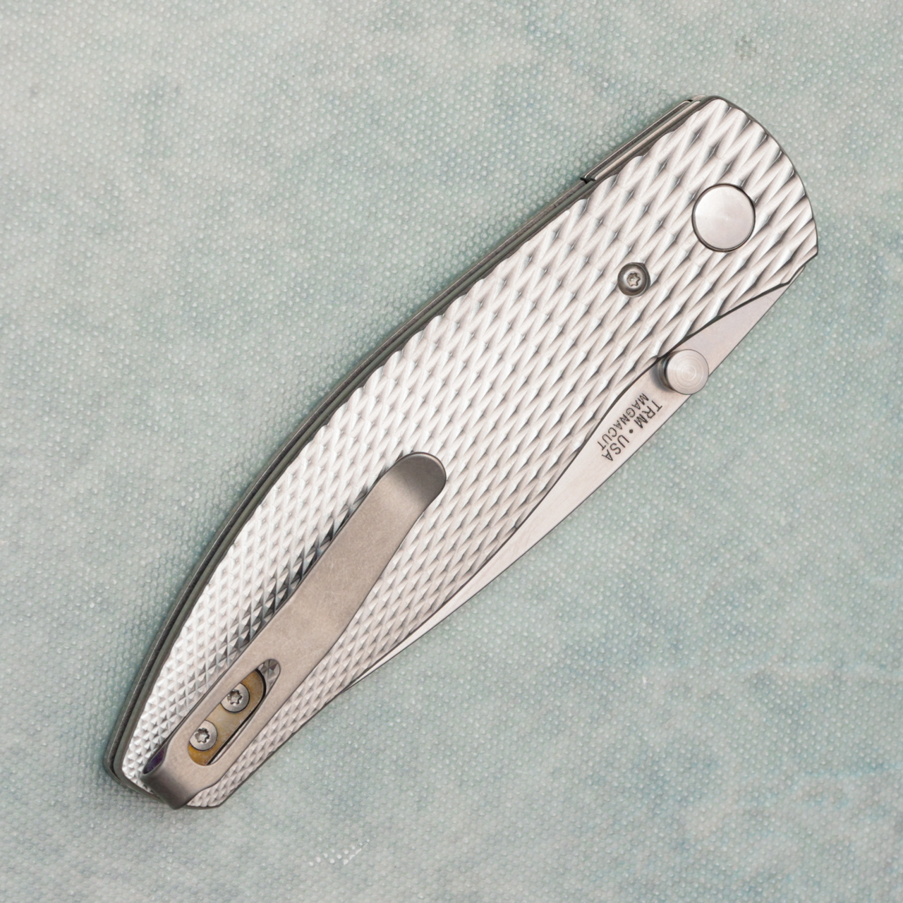 Three Rivers Manufacturing TRM Atom Liner Lock Lizard Skin Textured Titanium Scales Stonewashed MagnaCut Blade