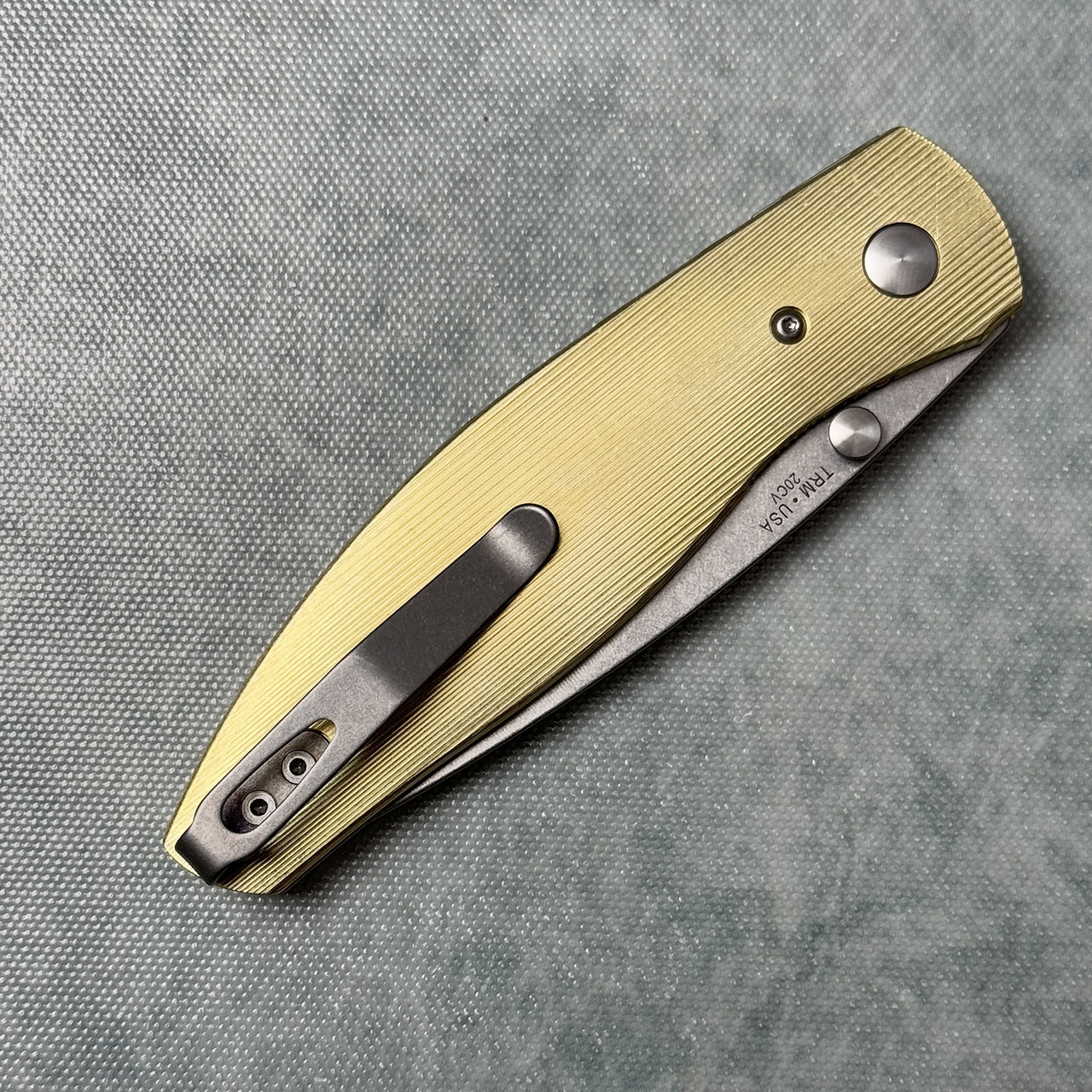 Three Rivers Manufacturing TRM Atom Liner Lock Pinstripe 3D Brass Scales Stonewashed 20CV Blade