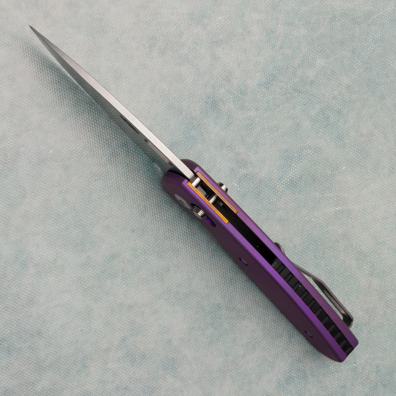 The bulldog is a perfect sized edc knife, featuring TRM's river-LOK. This model comes with 3D purple anodized titanium scales, and a CPM-MagnaCut stainless steel blade. Right hand tip up carry only. Brand new in box.