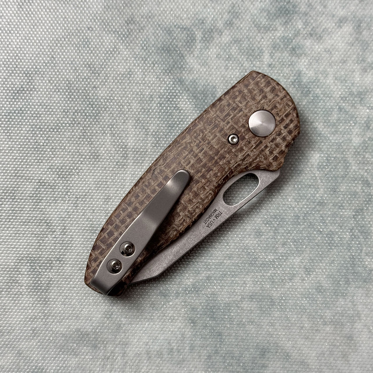 Three Rivers Manufacturing TRM Holey Nerd Liner Lock 3D Burlap Micarta Handle Stonewashed MagnaCut Blade
